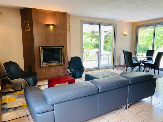 De grandes baies vitrées apportent luminosité et continuité à l’ensemble ainsi que plusieurs accès directs à la terrasse. Une charmante pergola en bois couverte et végétalisée vous permettra de profiter de merveilleux moment en famille et entre amis .