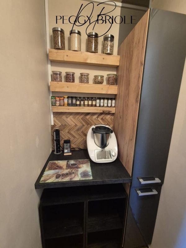 Une cuisine moderne et entièrement équipée, avec meubles et électroménagers inclus.
