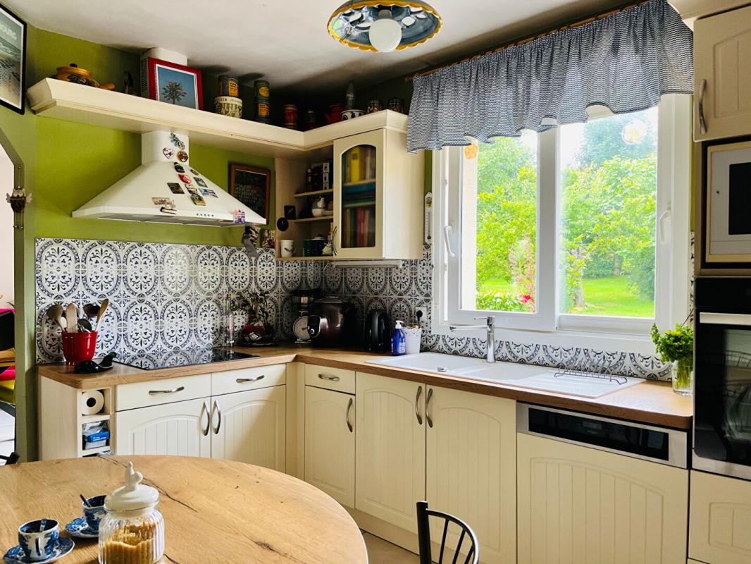 Nous arrivons ensuite dans la cuisine, tournée vers le jardin, au SUD et aménagée, équipée avec goût.