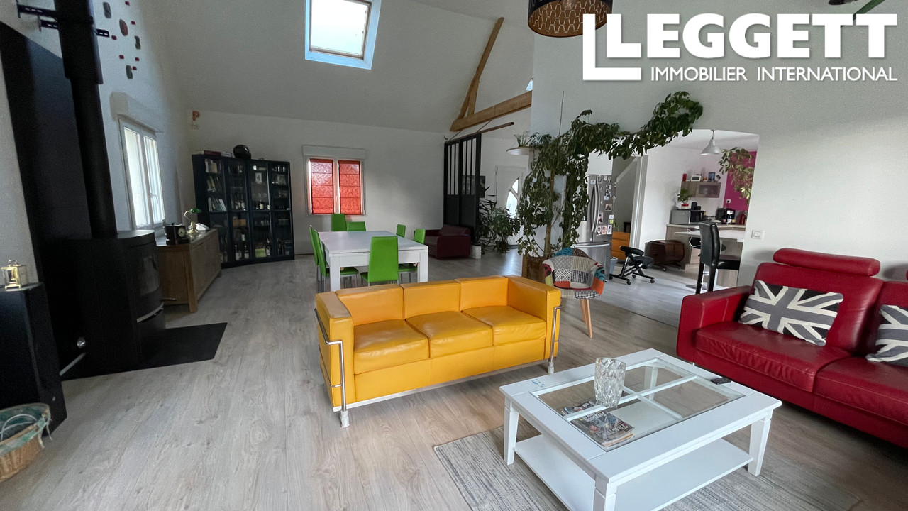 A38337RL53 - Une maison d'habitation construite en parpaings enduits et couverte en ardoises comprenant: Entrée, séjour, cuisine ouverte aménagée, deux WC, Salle d'eau, buanderie, trois chambres, dressing, salle d'eau. À L'étage: grenier. Sous-sol: chaufferie, garage, atelier. Terrain. Double vitrage partout. Chauffage - une pompe chaleur. quelques finitions à prévoir sur la terrasse arrière.