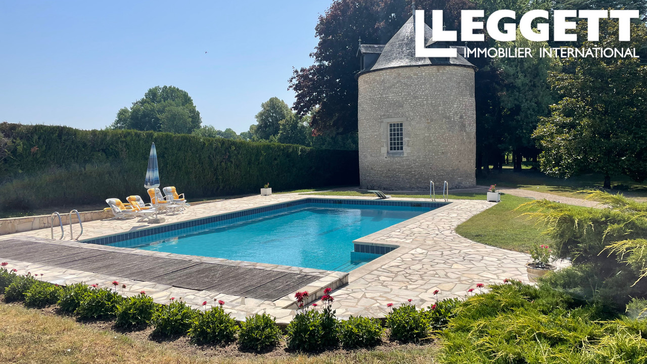 A38396ADU36 - Cette propriété du XVIIIe siècle, magnifiquement entretenue, bénéficie d'un parc arboré de plus d'un hectare. Elle est bordée par une rivière et entourée de haies de cèdres pour une intimité totale. Le terrain comprend une grande piscine avec couverture électrique, un court de tennis, un étang poissonneux et un potager.