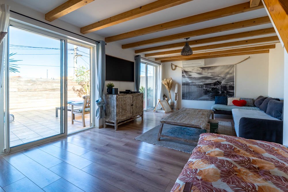 Un second salon, idéal en coin télé ou salle de détente, prolonge l'espace de vie et s'ouvre sur une agréable terrasse de 32 m², parfaite pour les beaux jours.