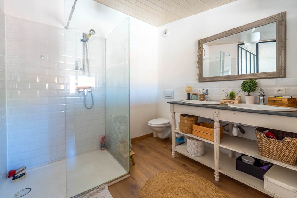 À l'étage, une suite parentale complète l'ensemble. Elle dispose d'un dressing, d'une salle d'eau avec douche, ainsi que d'un second dressing, pour un confort optimal.