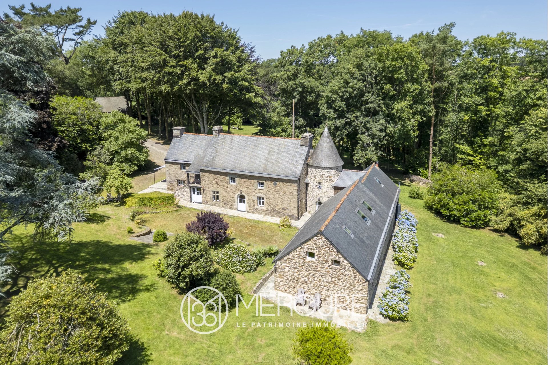 Situé au cœur du domaine, en hauteur et invisible depuis la route, le manoir s’organise autour d’une tour ronde et deux ailes en équerre. L’architecture typique bretonne se retrouve dans les linteaux en pierre, fenêtres à meneaux et toitures en ardoise.