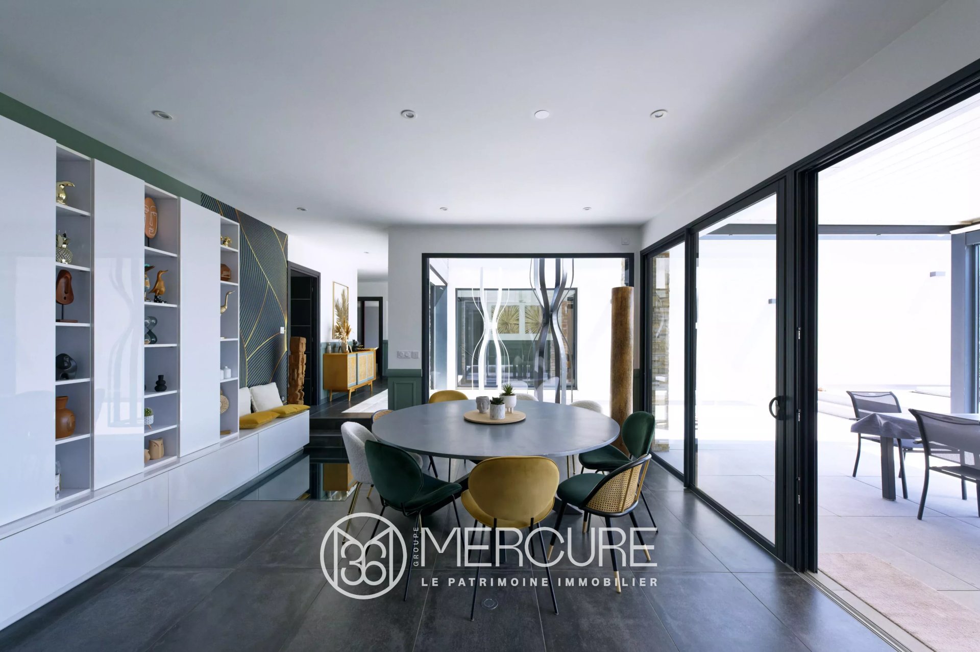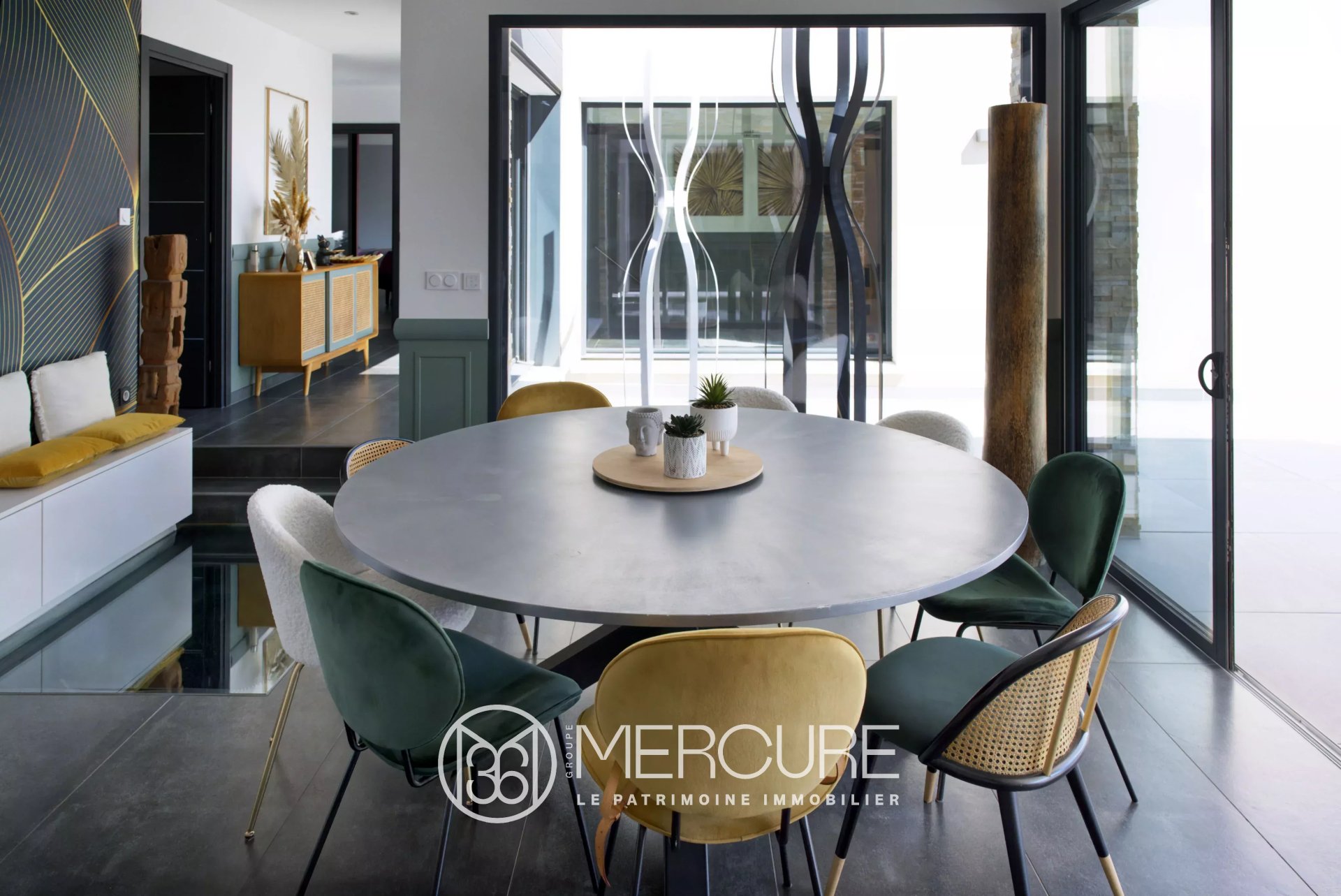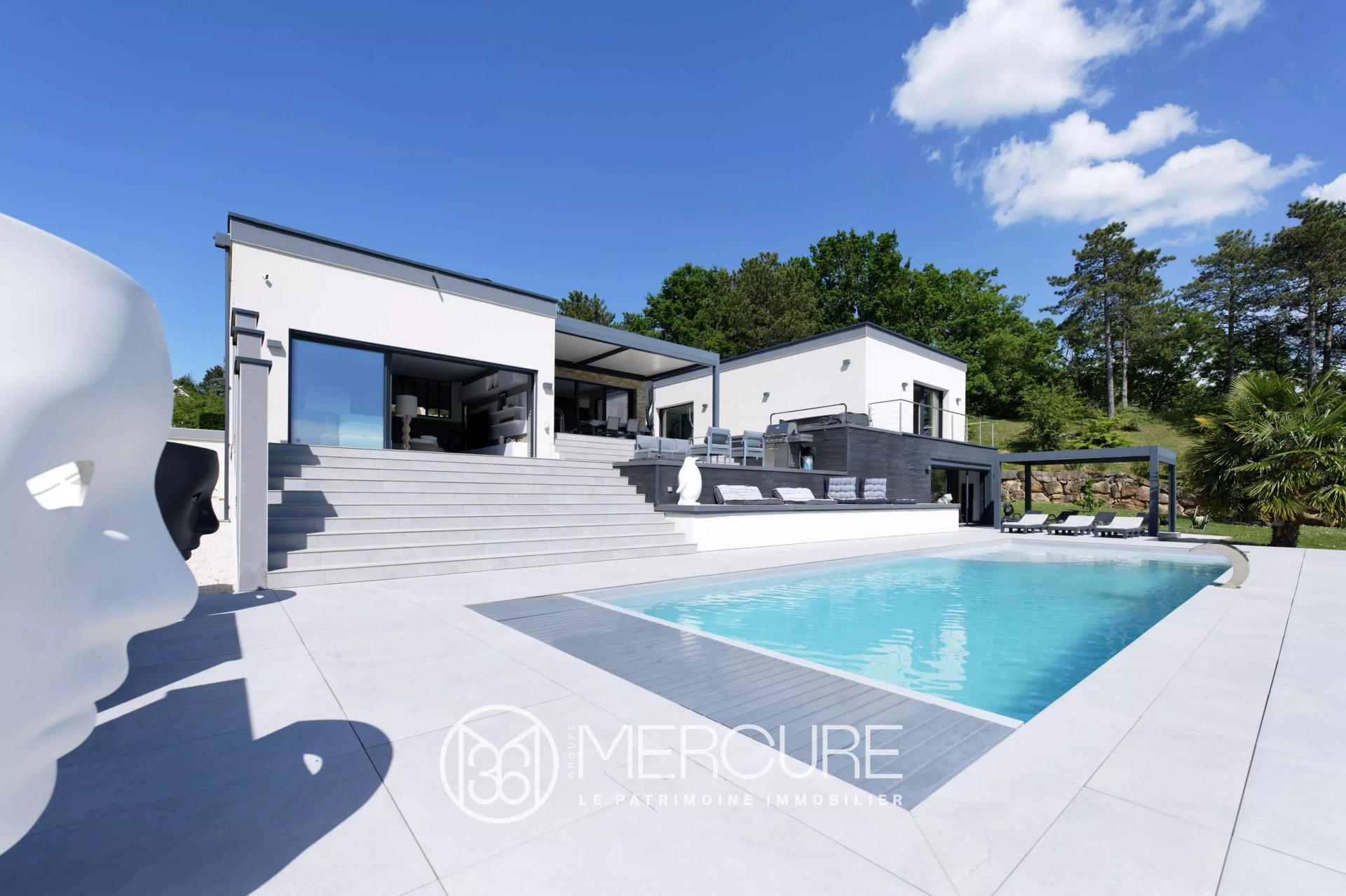 Édifiée en 2016, cette maison d'architecte de 295 m² habitables répartis sur deux niveaux offre des prestations de grand standing. Elle dispose de quatre chambres avec vue panoramique, chacune bénéficiant de vastes dressings, d’une salle d’eau ou d’une salle de bain, ainsi que de toilettes privatives.
