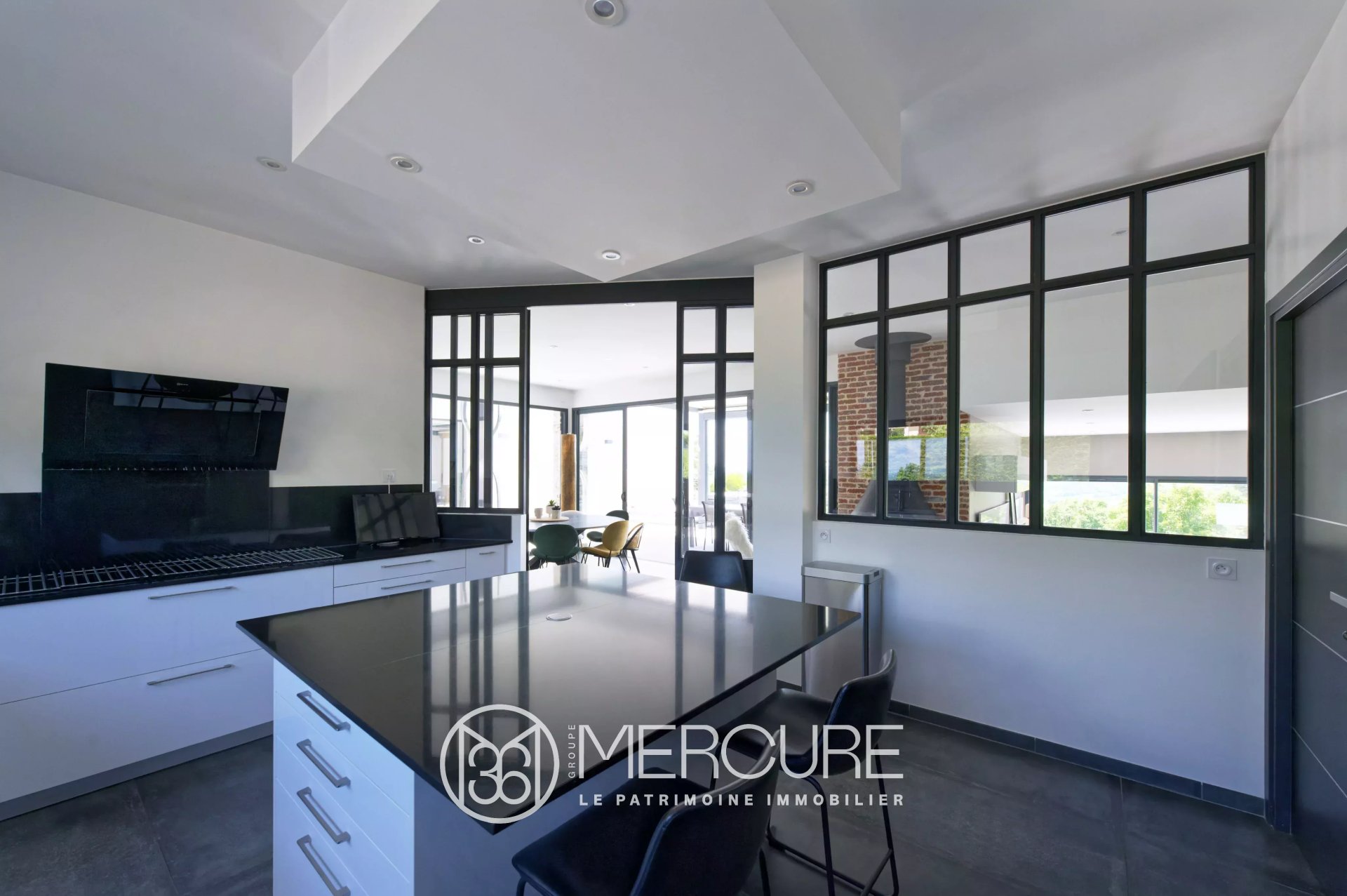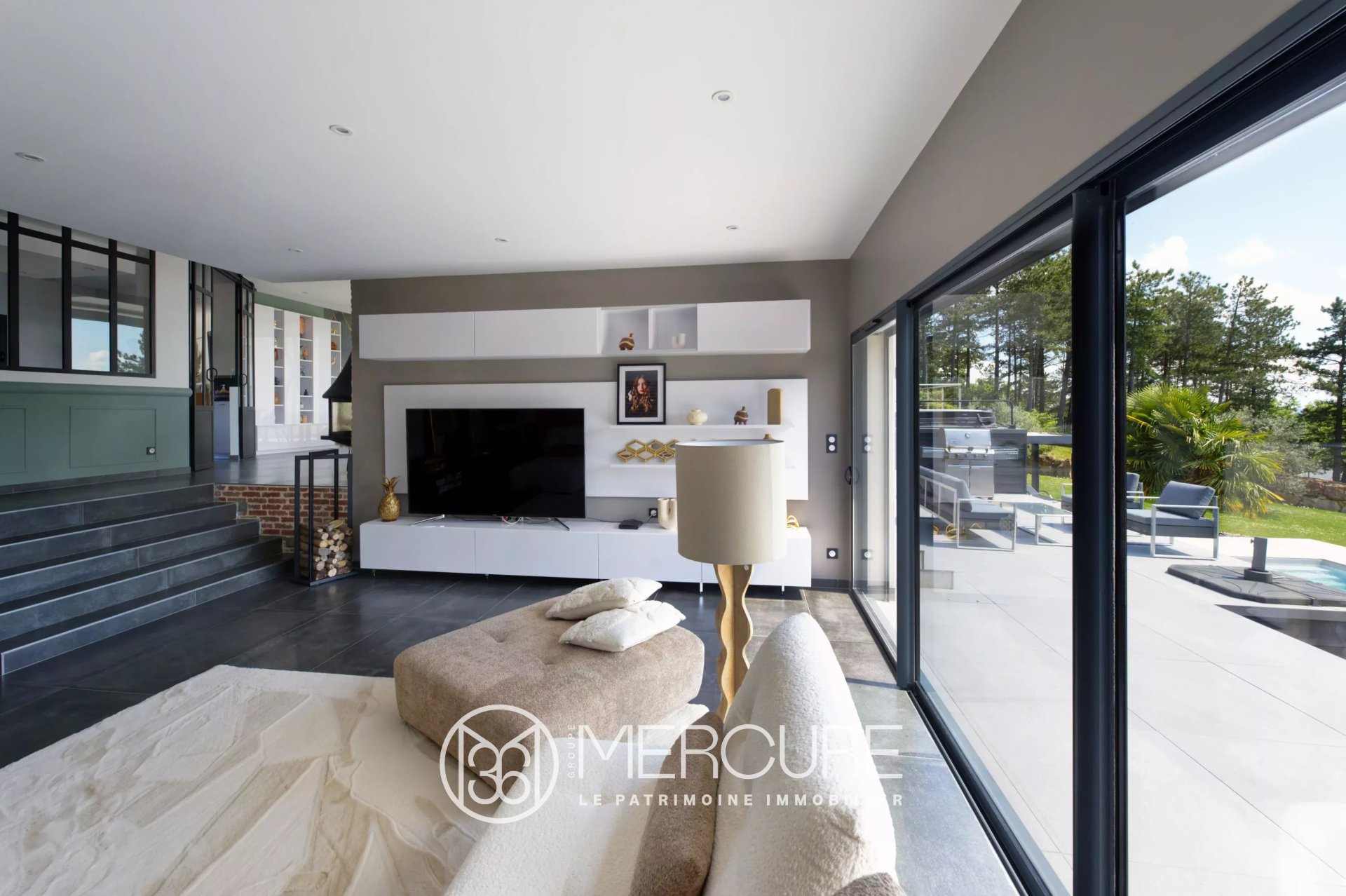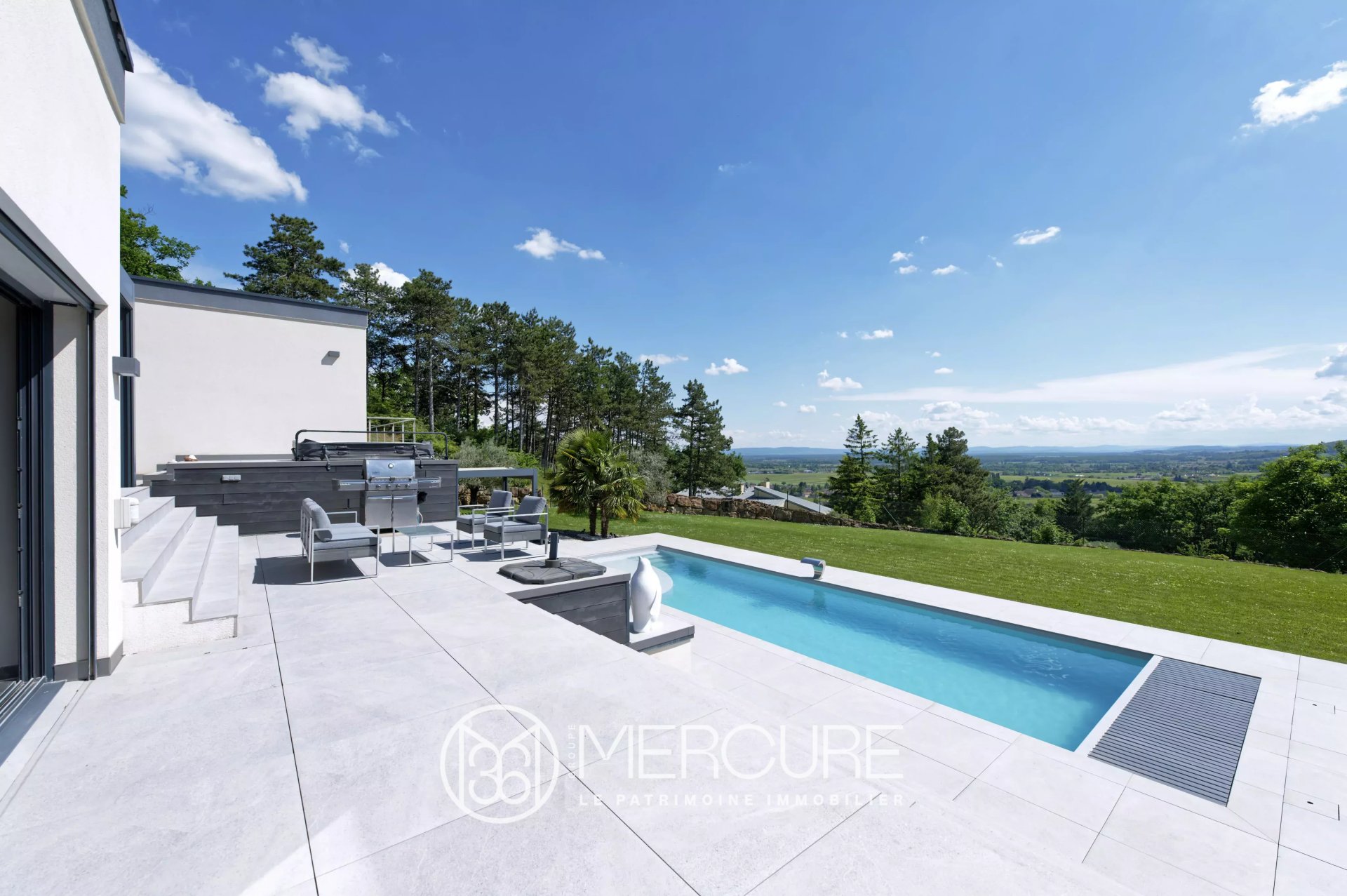 Édifiée en 2016, cette maison d'architecte de 295 m² habitables répartis sur deux niveaux offre des prestations de grand standing. Elle dispose de quatre chambres avec vue panoramique, chacune bénéficiant de vastes dressings, d’une salle d’eau ou d’une salle de bain, ainsi que de toilettes privatives.