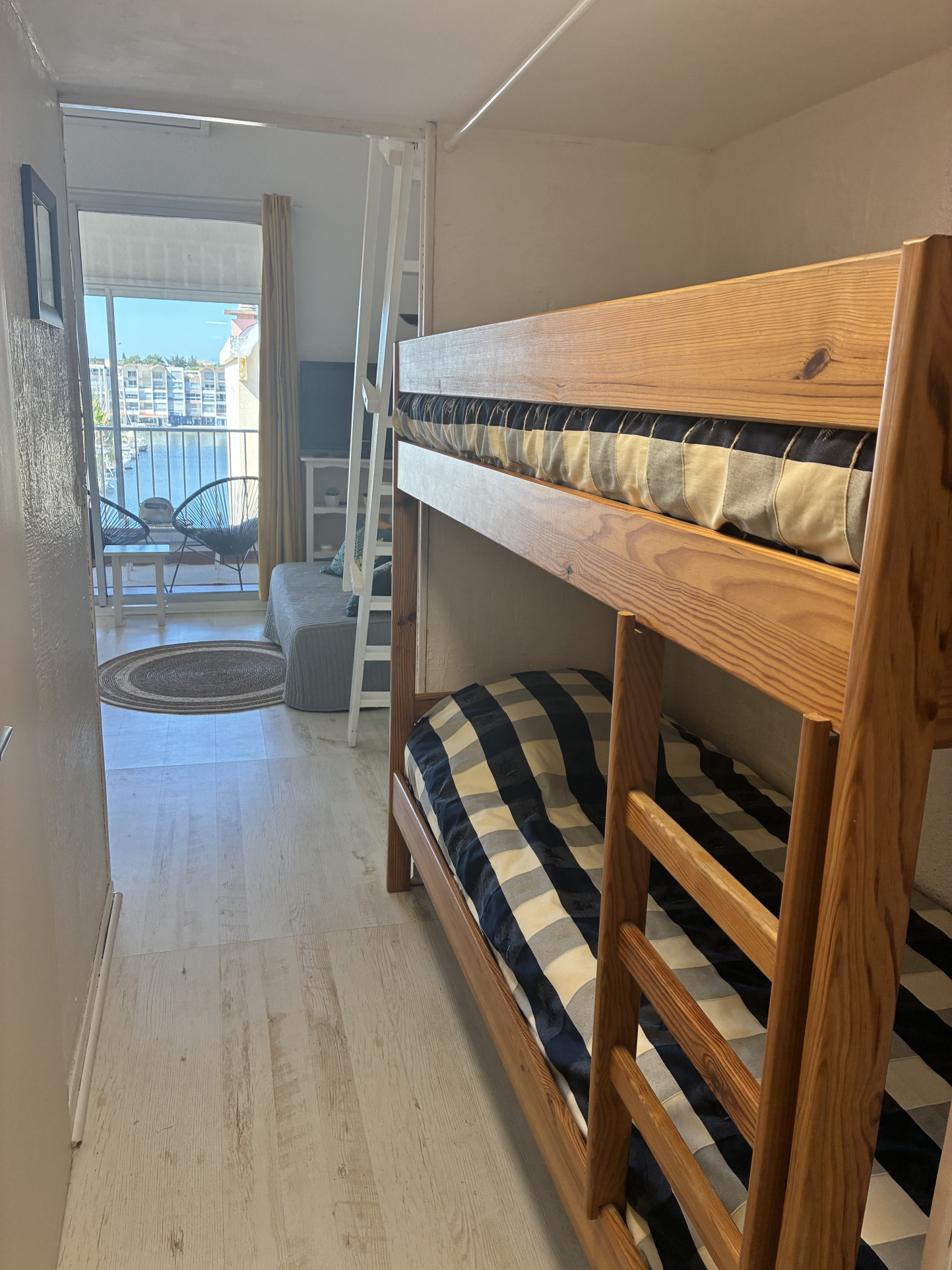 Situé au dernier étage d'une résidence sécurisée, accès direct sur le port, il bénéficie d'un emplacement au calme, sans aucun vis-à-vis, très lumineux grâce à son orientation plein sud, il est composé d'une entrée/cabine avec lit superposé, une salle de bains, un wc séparé, séjour et cuisine ouverte ainsi qu'une chambre en mezzanine.