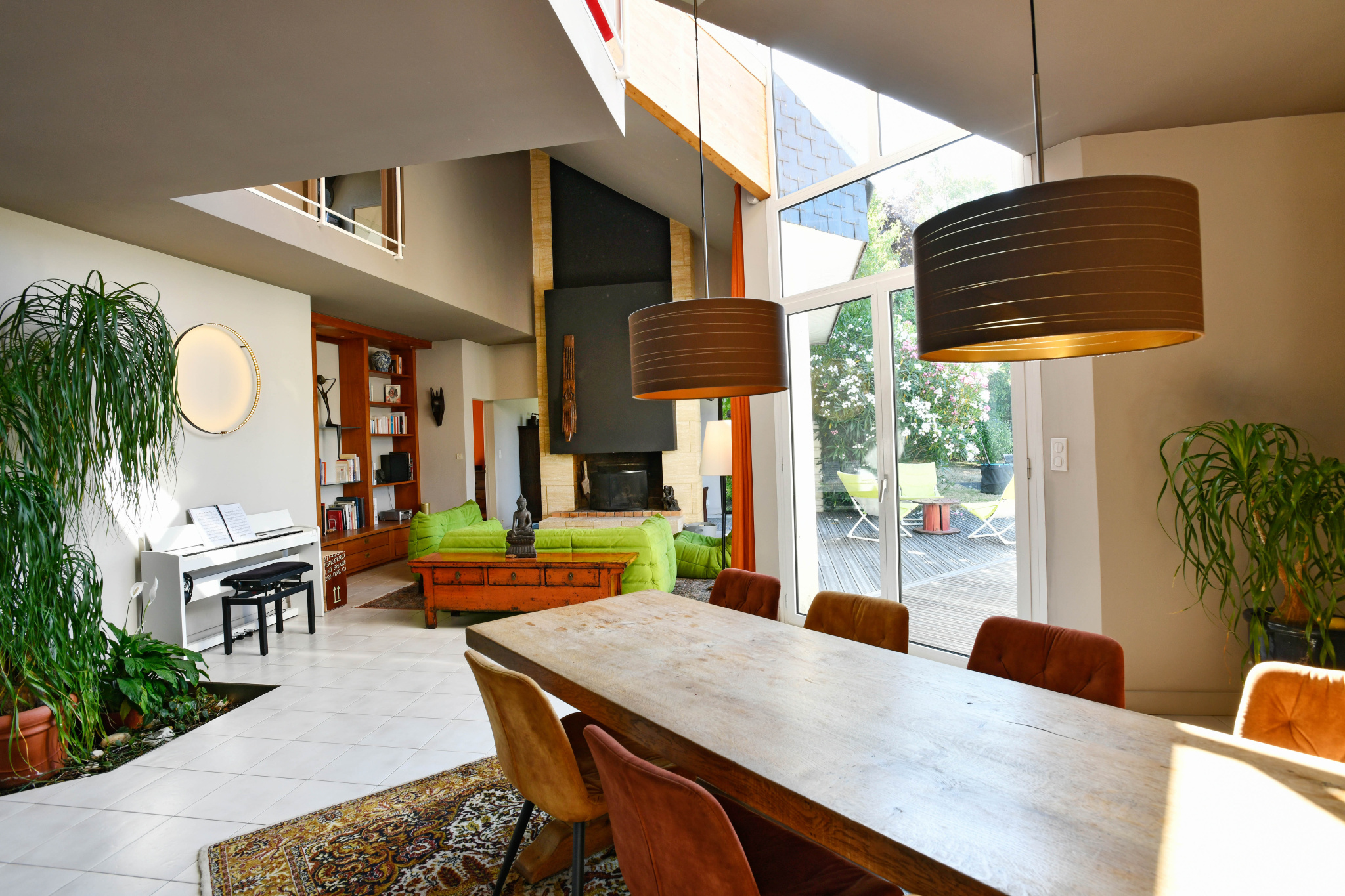 A Savenay, emplacement idéal, centre ville, au coeur de son parc arboré de 2000 m2, clos de murs en pierre, cette magnifique villa d'architecte offre un quotidien incomparable, dans plus de 260 m2 habitables !