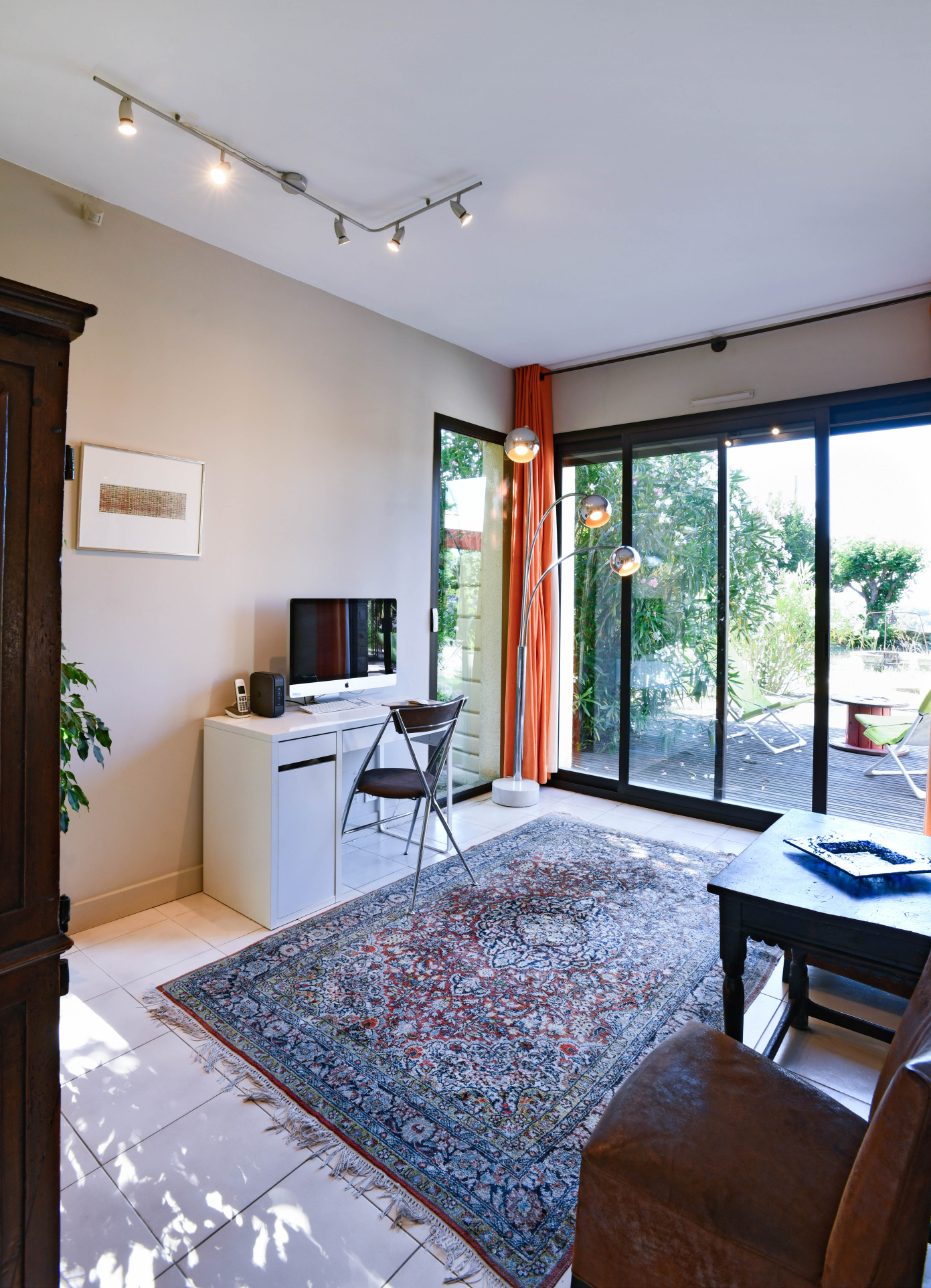 Le rez-de-chaussée de la villa propose un vaste hall d'entrée avec vestibule, un salon-séjour avec cheminée, une grande cuisine avec cellier attenant, un bureau, WC, ainsi qu'une grande et belle suite parentale.