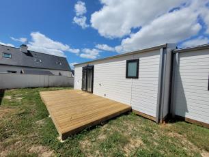Pour l'extérieur, vous profiterez d'une agréable terrasse en bois. La parcelle de terrain sera cloturée en partie, et planté de haies à l'automne.