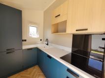 - une pièce de vie avec une cuisine aménagée et équipée (plaques électrique, hotte, lave vaisselle, combiné réfrigérateur et congélateur)
