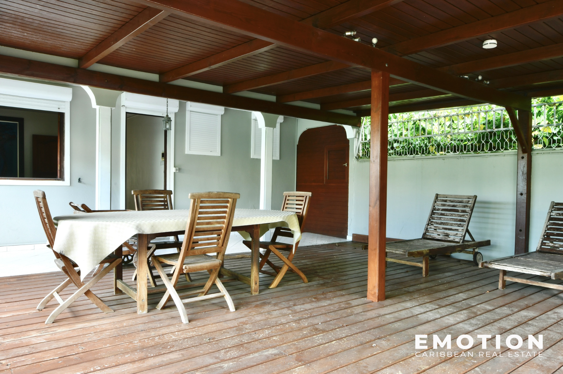 Le cabinet EMOTION Real Estate Guadeloupe, vous présente, une villa T4 avec une mezzanine à la vente avec 153 m2 de superficie habitable, bâti sur un terrain de 626 m2. Située à Port-Louis dans le centre ville, dans un environnement calme, ventilé et verdoyant à 2 minutes de la plage du Souffleur.