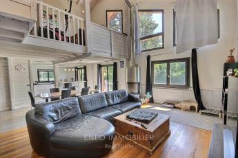 A l’étage : un magnifique espace mezzanine ouvert sur la pièce de vie, 4 autres chambres ainsi qu’une seconde salle-de-douche avec WC intégré.