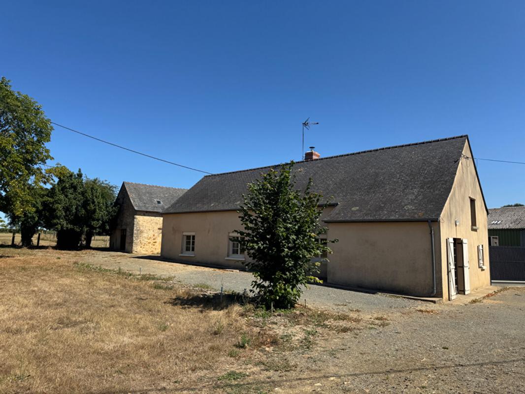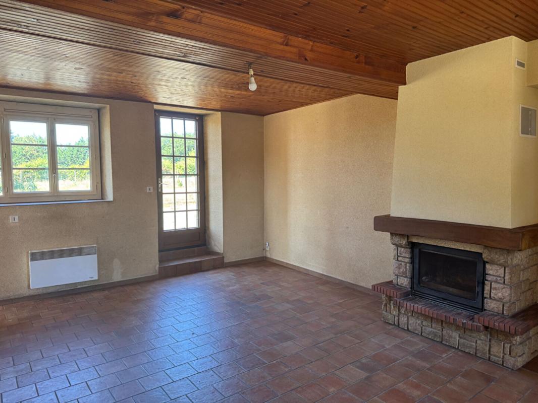 Longère de 85,84m2 offrant entrée, cuisine, salon-séjour avec cheminée à insert avec répartition de chaleur, 3 chambres, salle d'eau, wc indépendant.