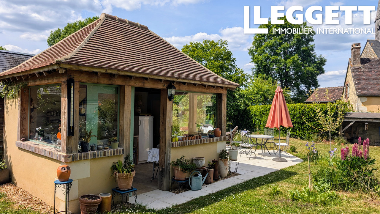 A37206EI61 - Maison à vendre dans le Perche. Dans un joli village surplombant la forêt. En partie la propriété datent du XVIIIe siècle. La propriété a été rénovée avec goût et offre un total de 137 m², cuisine d'été comprise. Elle comprend 3 chambres et trois salles de bains. Un jardin exceptionnel avec vue, une prairie, un potager et la rivière en bordure.