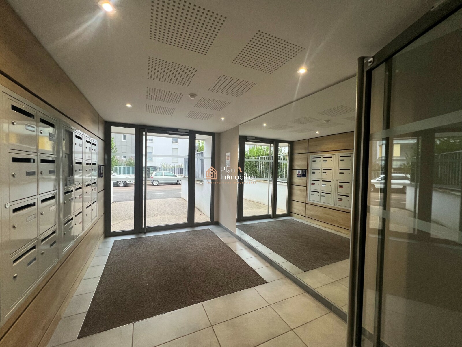 L'accès à l'immeuble est sécurisé : visiophone et badge + portail motorisé pour véhicules.
