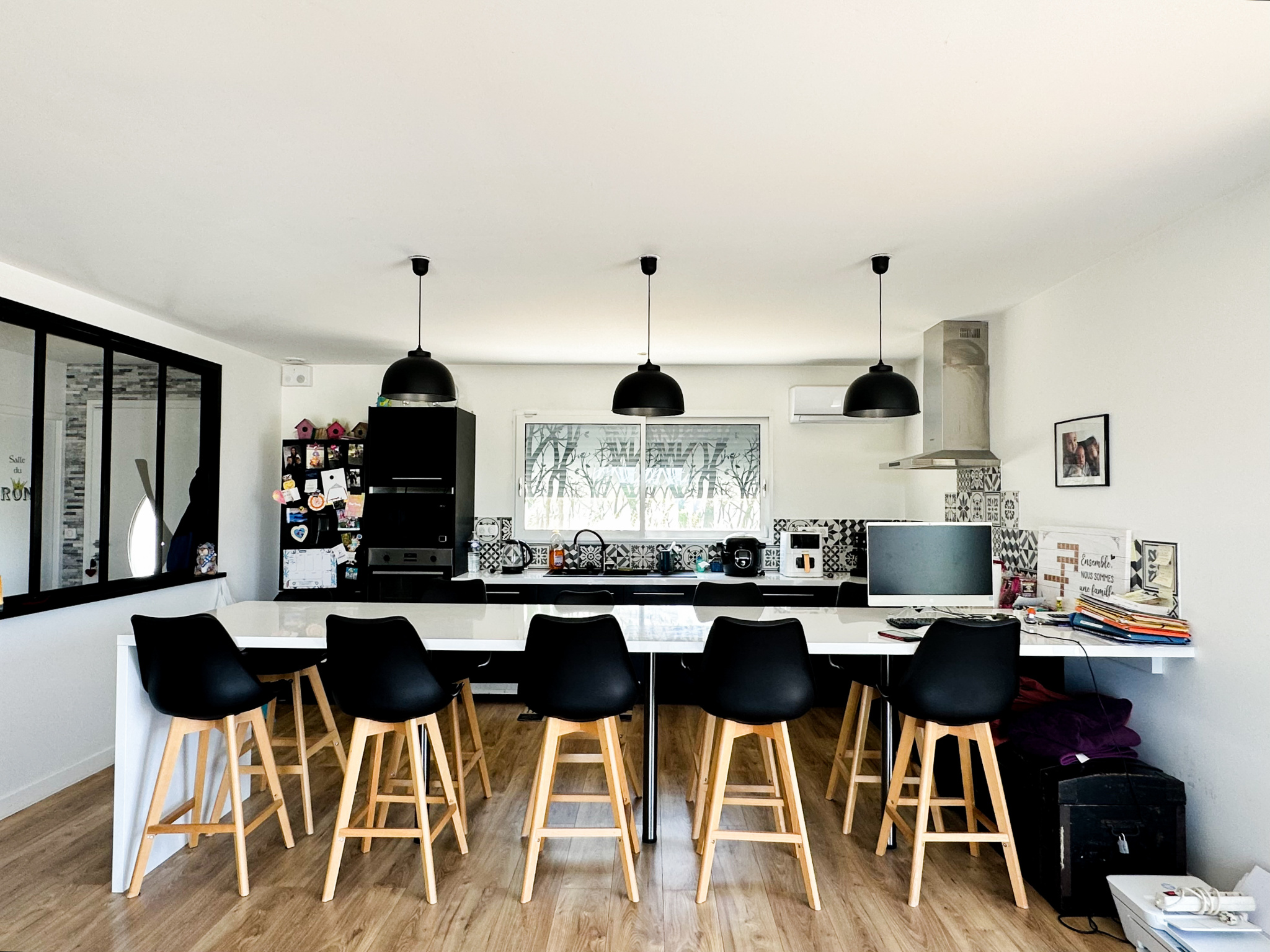 Celle-ci nous ouvre ses portes sur un espace entrée pratique menant naturellement vers la vaste pièce de vie de 48m2 largement ensoleillée. Nous apprécions la cuisine équipée de qualité et son ilot démesuré comme point central. L'espace nuit n'est pas en reste avec ses 4 chambres (de 10,5m2 à 11m2) et la salle d'eau propose douche à l'italienne et double vasque.