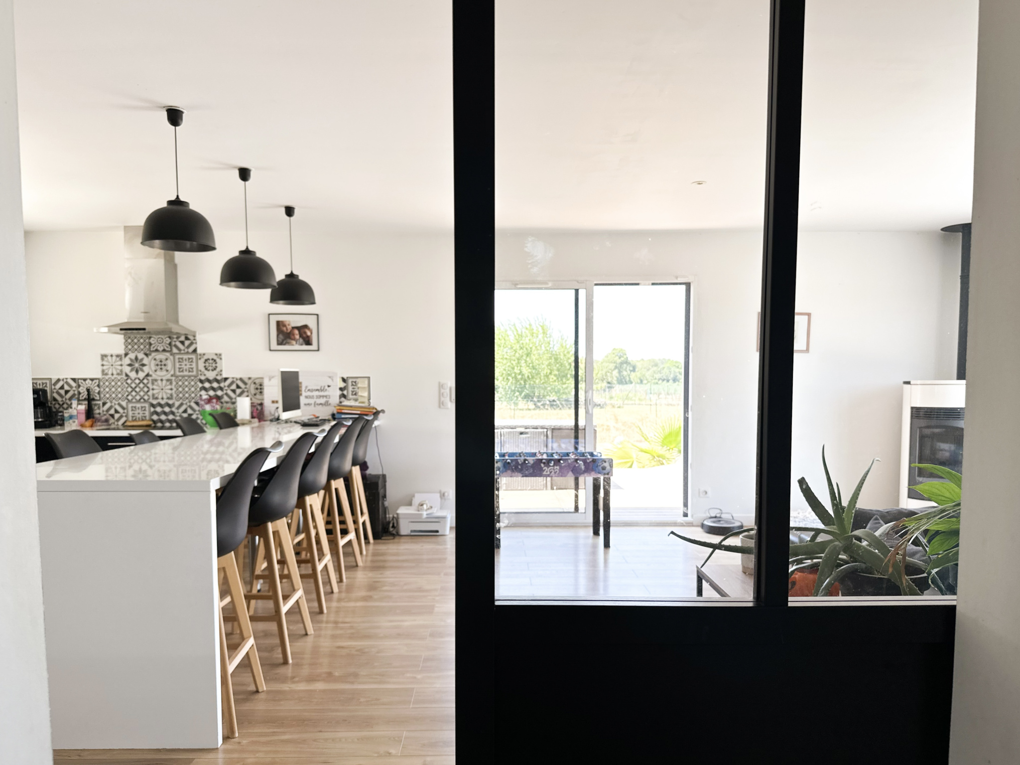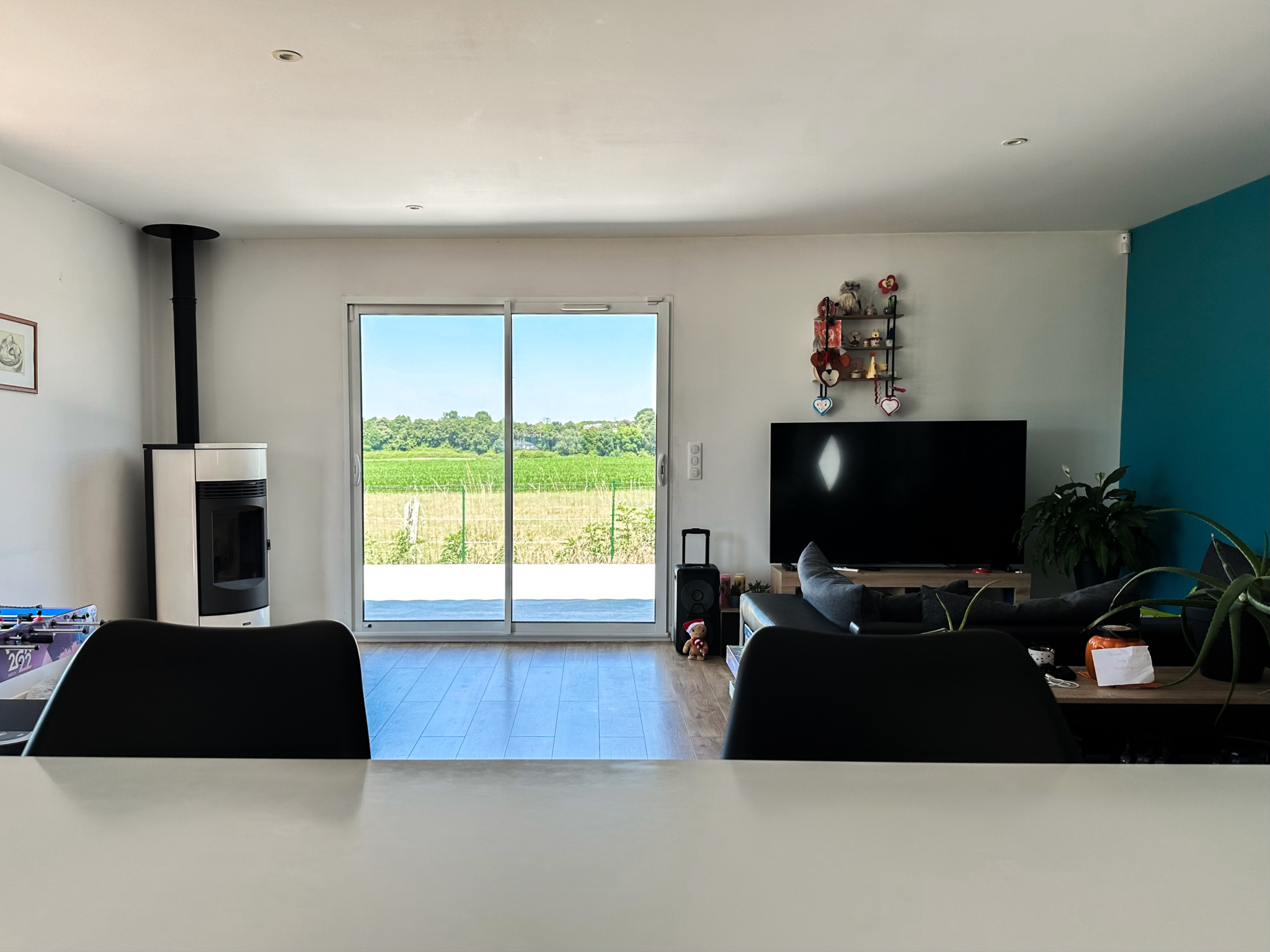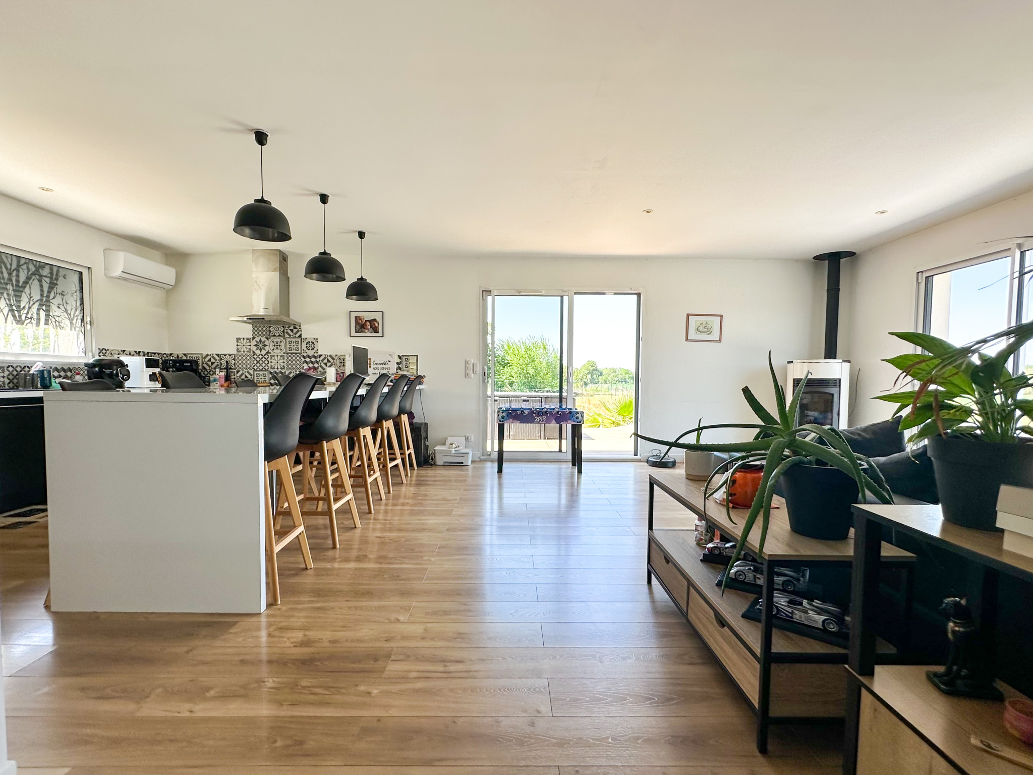 Tout ici est pensé pour le confort : Large cellier, placards et rangements, chauffage et climatisation par pompe à chaleur réversible, poêle à granulés, panneaux solaires, portail aluminium coulissant motorisé, chauffe-eau thermodynamique et assainissement raccordé au tout à l'égout.