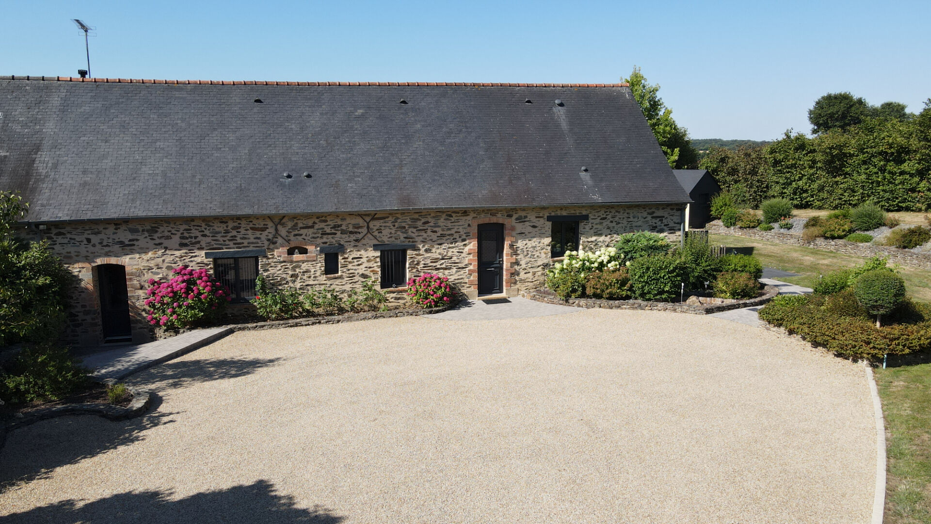 RARE aux portes de CHÂTEAU-GONTIER-SUR-MAYENNE, longère rénovée avec goût sur terrain clos aménagé et arboré, comprenant : une belle pièce de vie, trois chambres, une salle d'eau, toilettes, lingerie. Cuisine d'été.