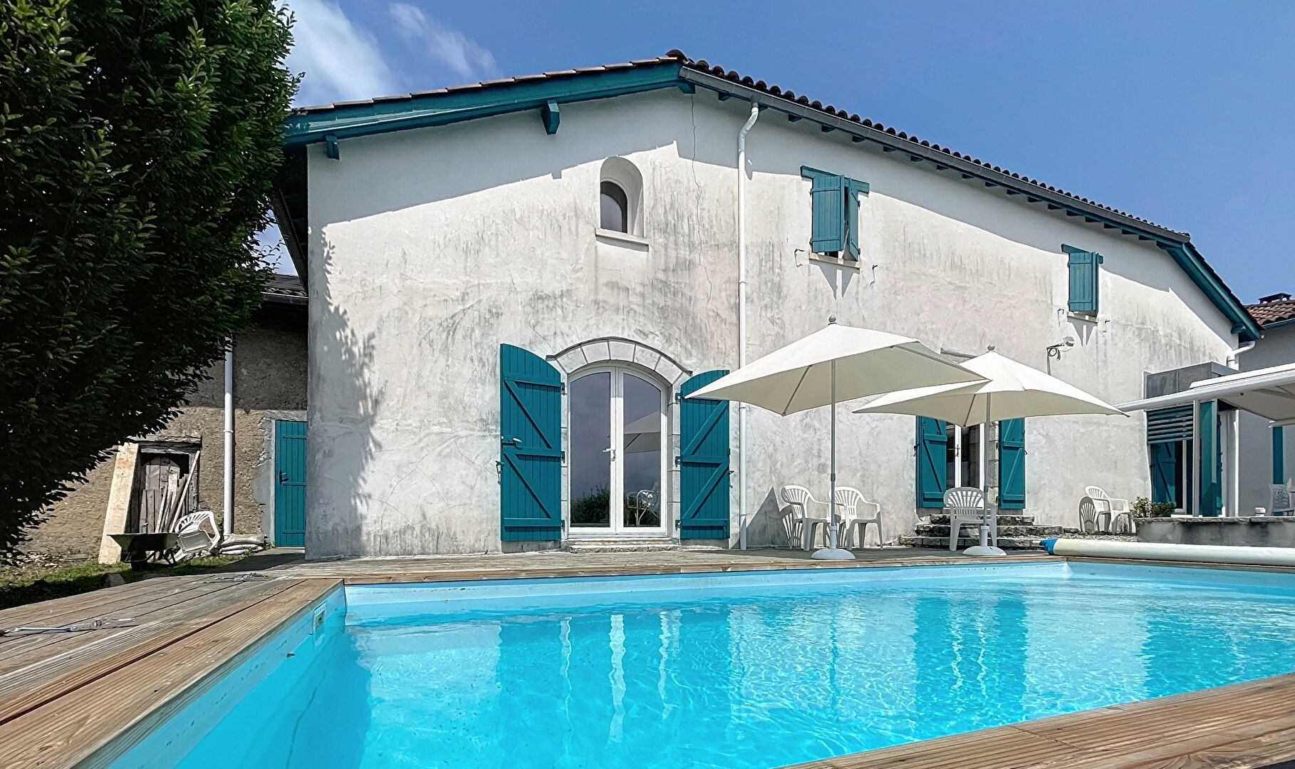 La première est une ancienne ferme rénovée, d'une superficie de 130 m² composée d'un salon séjour avec cheminée, cuisine, une salle d'eau. A l'étage 3 chambres, une salle de bains et une buanderie. Une grange d'environ 50 m². Piscine hors sol avec vue montagnes.
