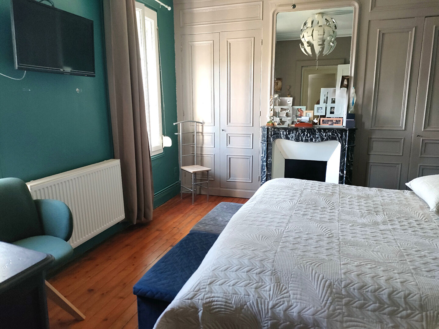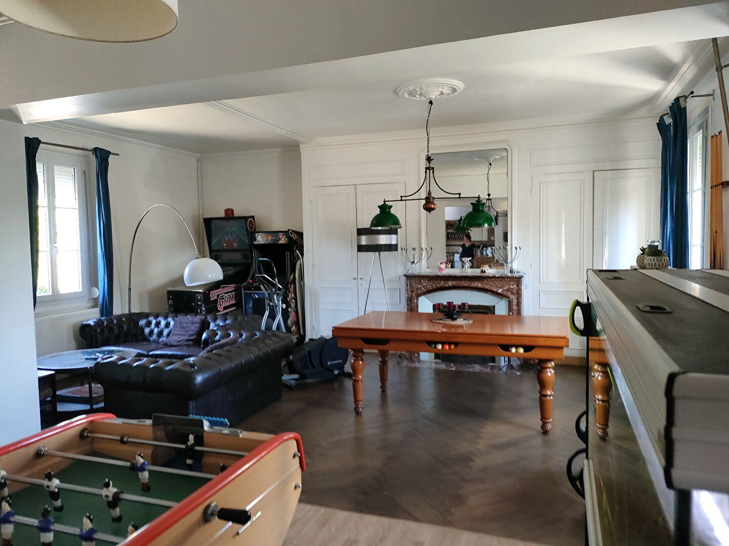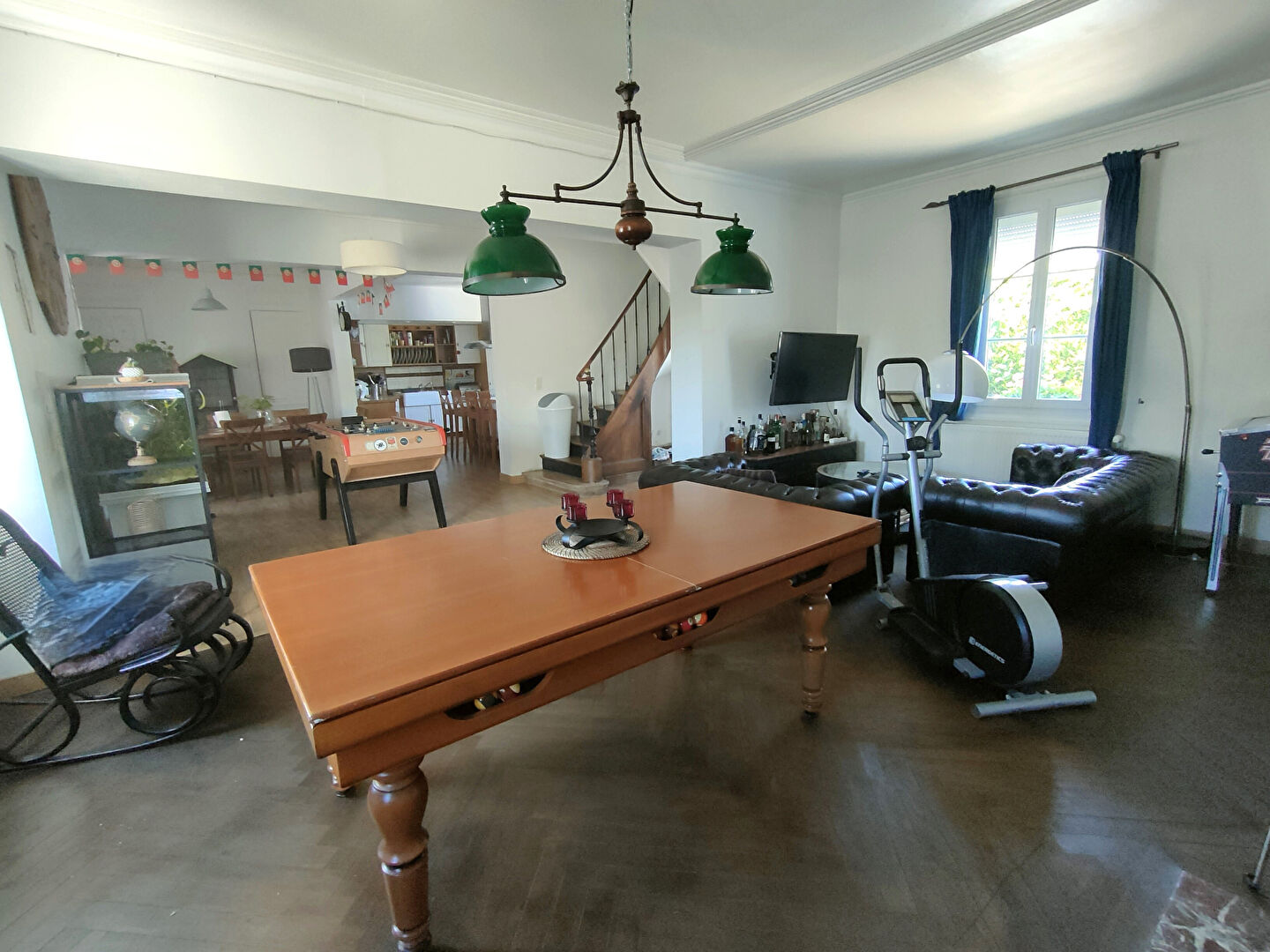 - a conservé tout son cachet : parquets, moulures, cheminées marbre, bel escalier.