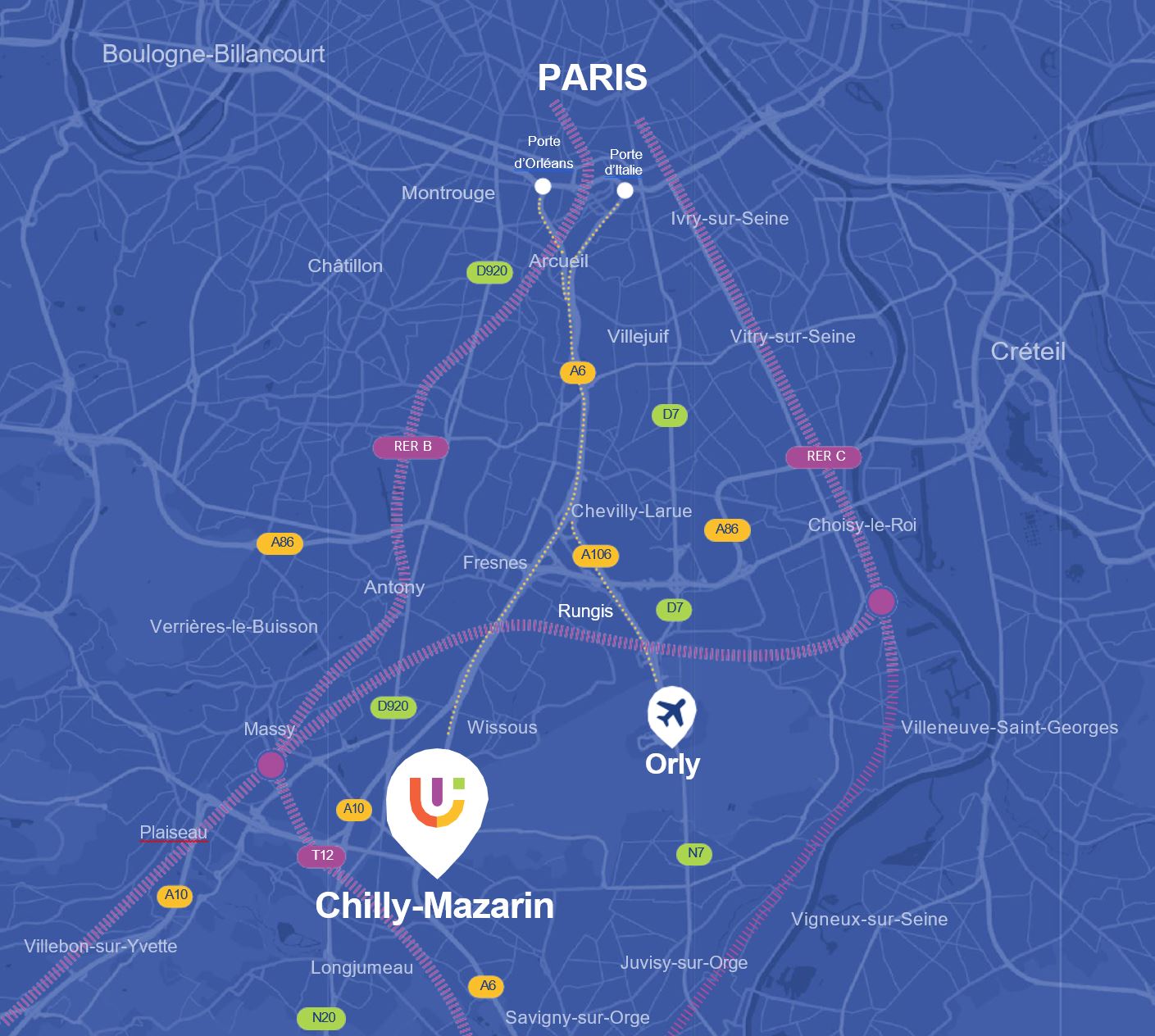 Située à 17 km du centre de Paris, Chilly Mazarin bénéficie d'une situation géographique avantageuse avec un accès facile aux grands axes de communication et à l'aéroport d'Orly.