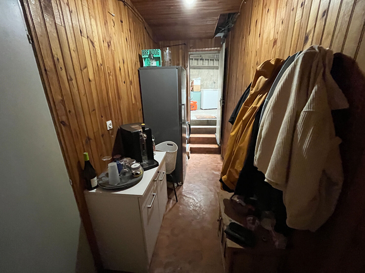 Elle se compose au RDC : d'un séjour donnant sur une cuisine, d'un WC, d'une buanderie, d'une cave et d'un grand garage.