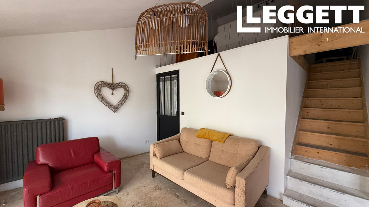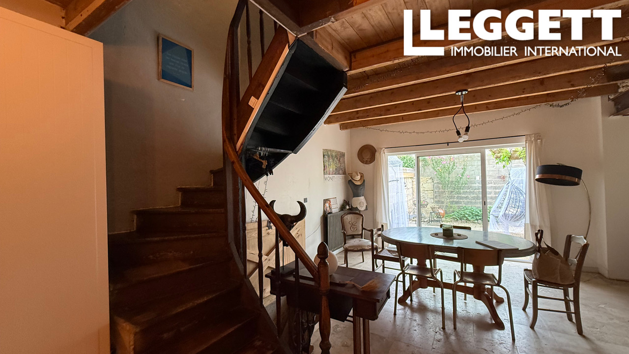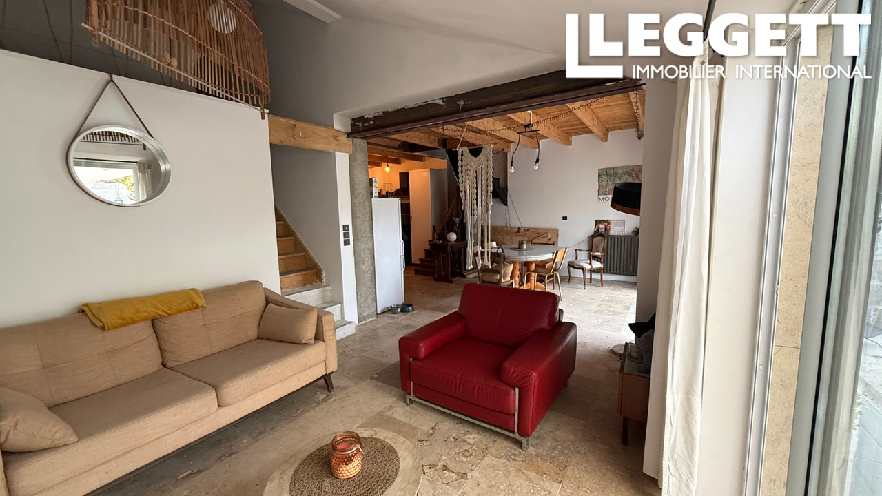 A38455TEC33 - Il s'agit d'une propriété récemment rénovée, proche de la gare et des aéroports de Bordeaux (1h) et de Bergerac (25 minutes). Elle dispose d'une grande cuisine salle à manger qui s'ouvre sur un salon et une mezzanine salle de télévision. Il y a deux chambres au premier étage et une autre grande pièce qui pourrait être utilisée comme chambre au deuxième étage. Il y a une salle de douche et un W.C. au rez-de-chaussée. Le garage est raccordé à la plomberie et dispose d'un espace buanderie/utilitaire.