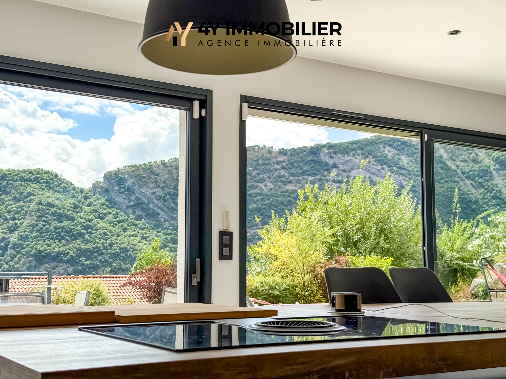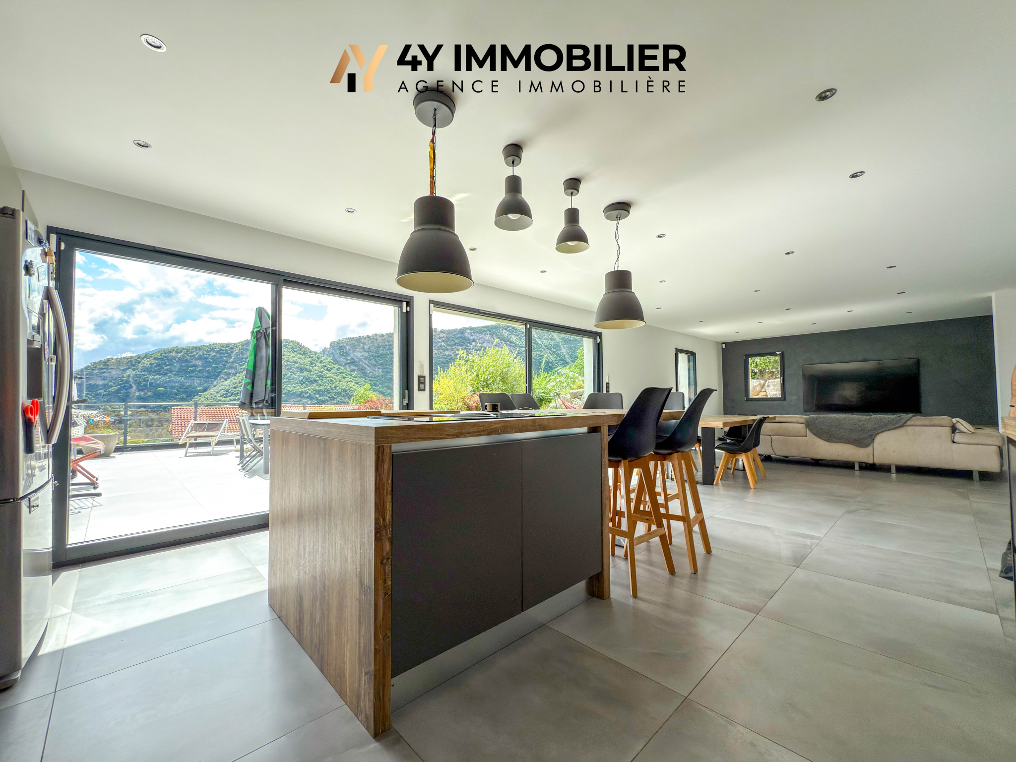 Au rez-de-jardin, une pièce de vie lumineuse de plus de 60 m2 réunit un salon/séjour convivial et une cuisine moderne entièrement équipée. L'ensemble s'ouvre sur une grande terrasse aménagée, exposée sud-est, idéale pour profiter de la luminosité et de la vue.