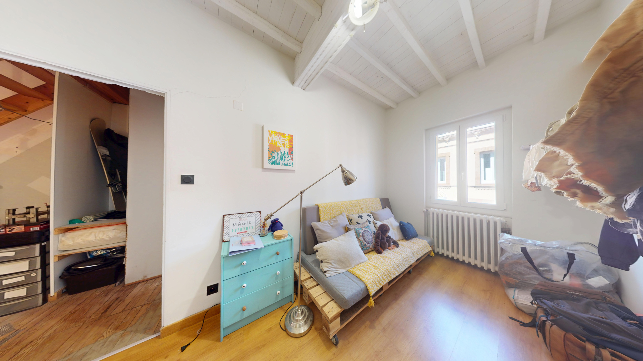 Au dernier niveau, mansardé : une chambre supplémentaire et un bureau en enfilade, parfait pour le télétravail ou une salle de jeux.