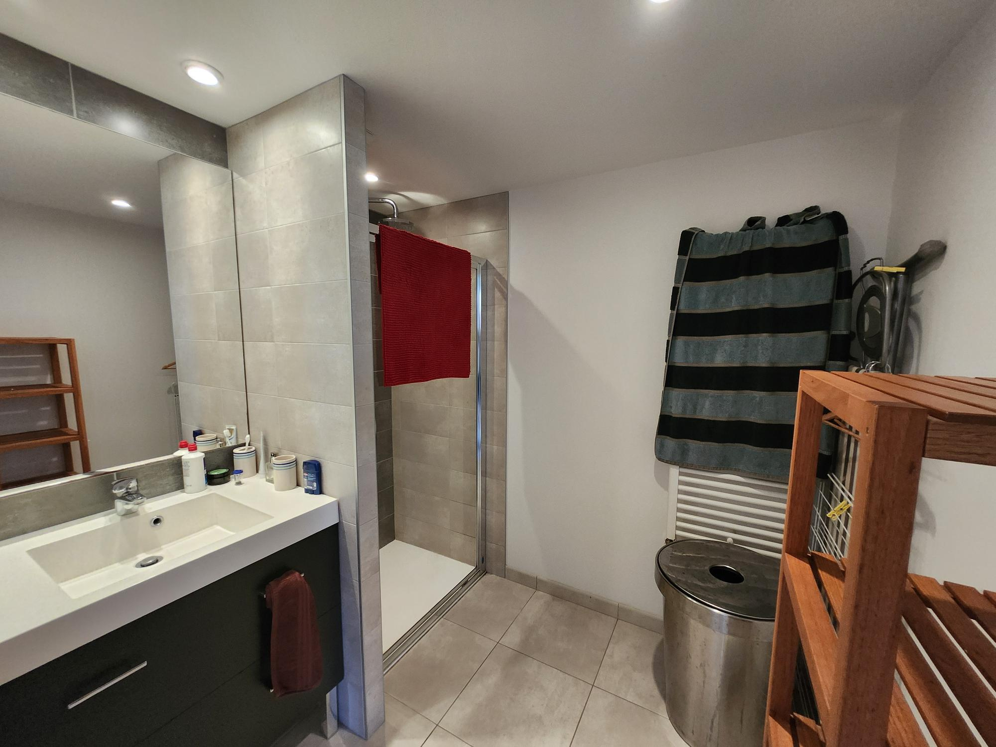 appartement en 2ème étage sans étage supérieur avec balcon terrasse de 12,5 m2. il offre une pièce de vie de 27,5 m2 avec cuisine aménagée, deux chambres, salle d'eau, WC. parking fermé en sous sol. immeuble récent de 2015