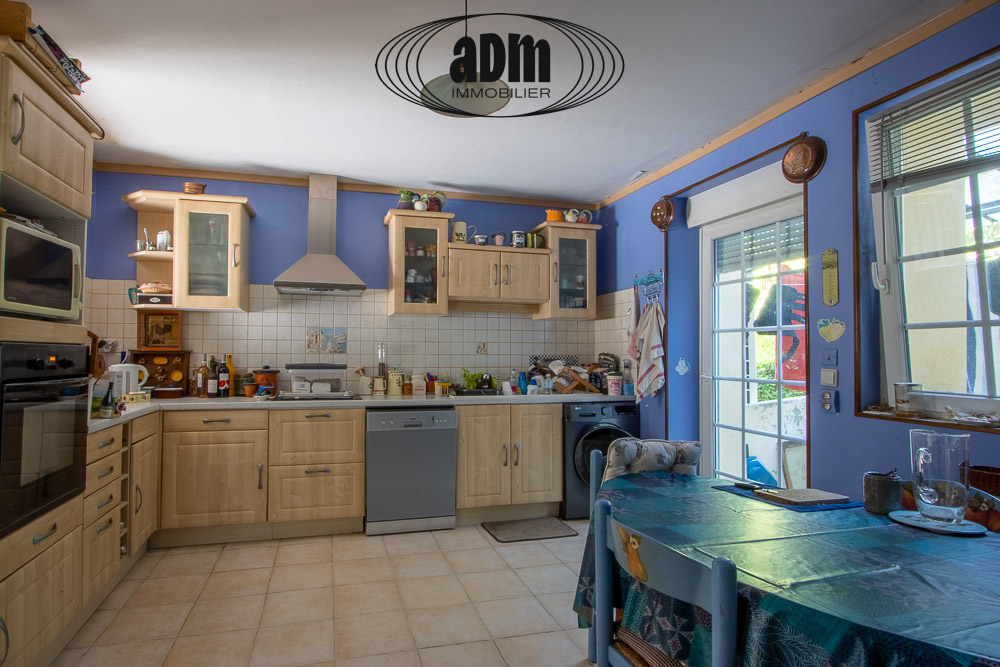 Au rez-de-chaussée, entrée, WC, séjour double salon avec cheminée, deux cuisines aménagées, une chambre un bureau, salle d'eau et buanderie avec WC.