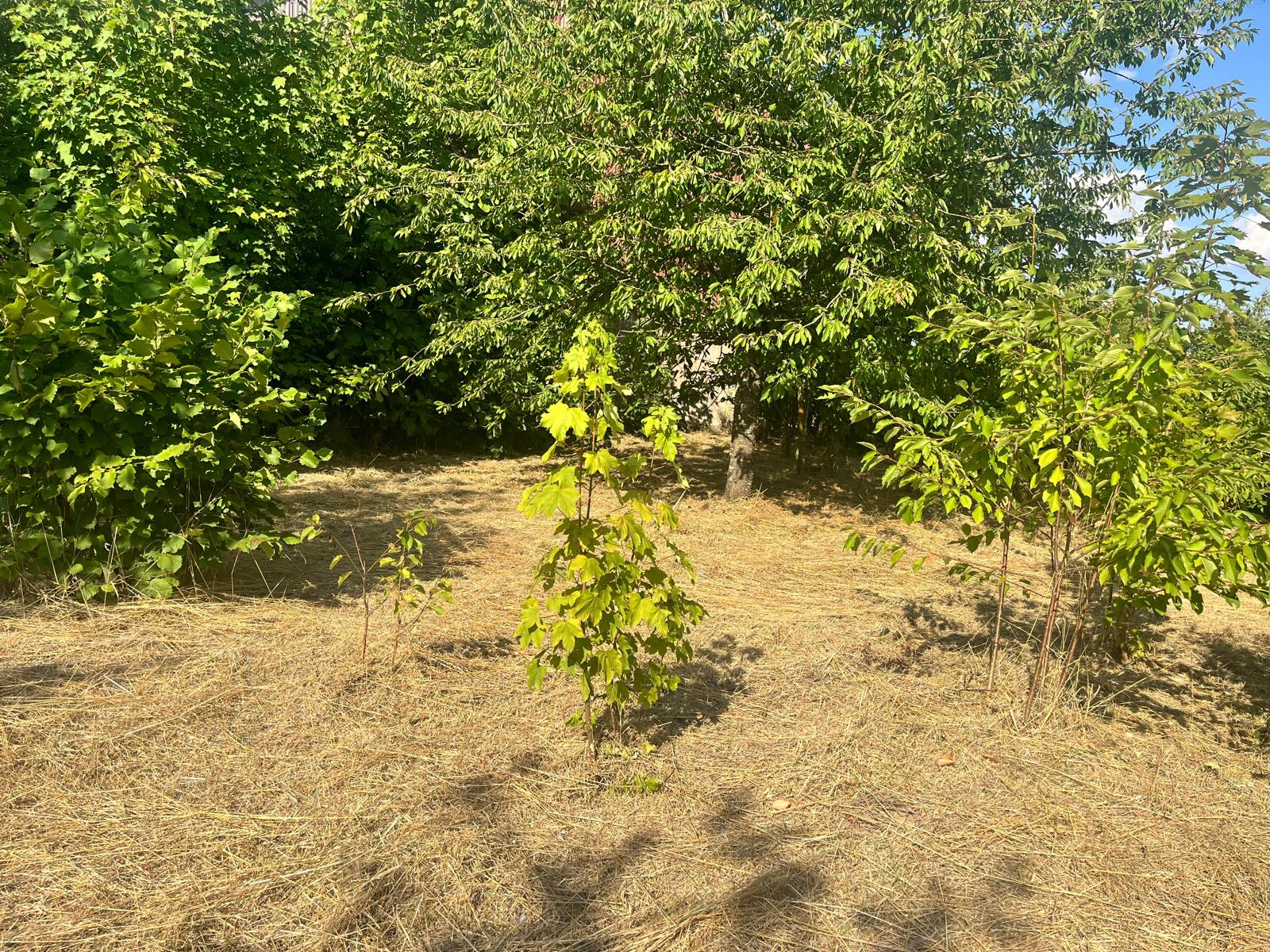 Le terrain attenant de 1300 m2 est arboré de fruitiers. C'est l'endroit idéal pour s'installer dans un village calme, à l'écart des routes passantes.