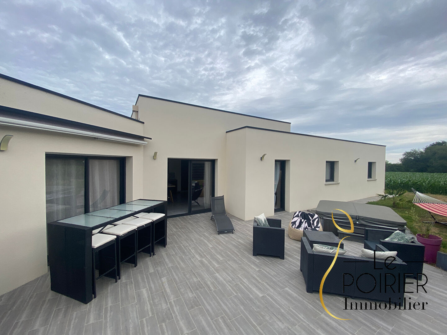 979JT : Maison de plain-pied construite en 2012, vous séduira par sa luminosité et ses volumes généreux. Elle offre une belle pièce de vie de 50 m², ouverte sur une grande terrasse en carrelage, Jacuzzi,