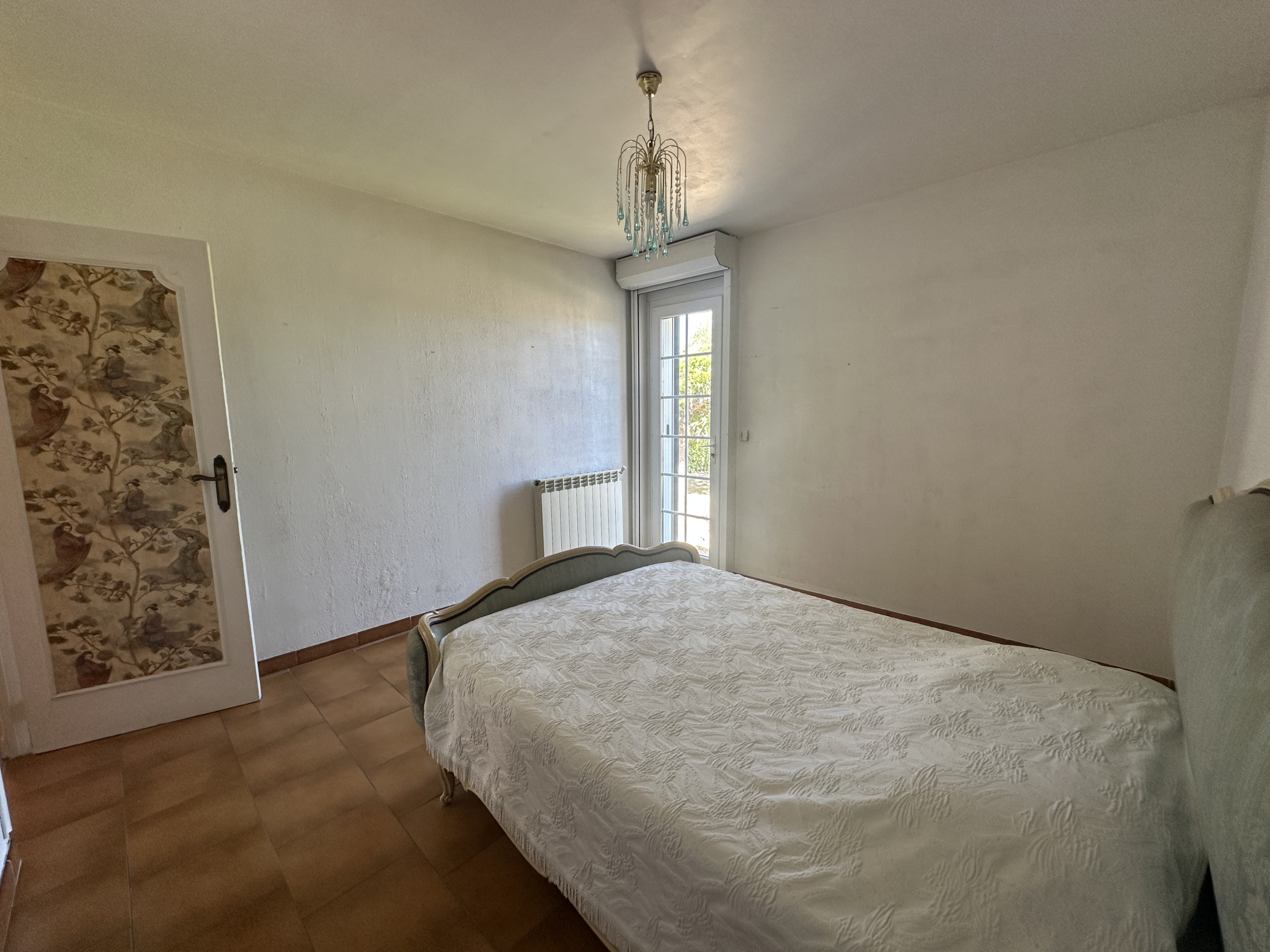 Une entrée ouverte sur une cuisine meublée et équipée, un séjour avec cheminée, 2 chambres, une salle de bains et wc indépendants. Une véranda et garage. Une piscine. Des terrasses - terrain autour de 600 m2 entièrement clos.