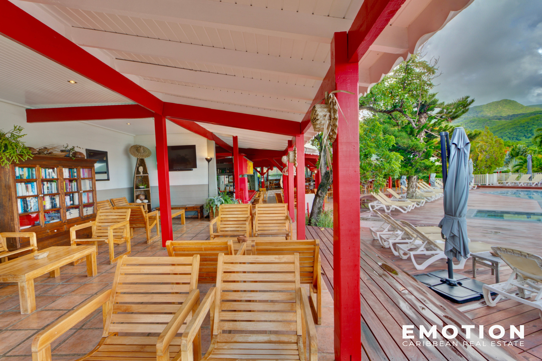 Le bien se compose : d'un hôtel de 22 chambres réparties dans des bungalows créoles nichés dans un jardin tropical, un restaurant en terrasse de 90 couverts avec une vue magnifique sur la piscine à débordement, les jardins et la mer bleue des caraïbes à 180 degrés.
