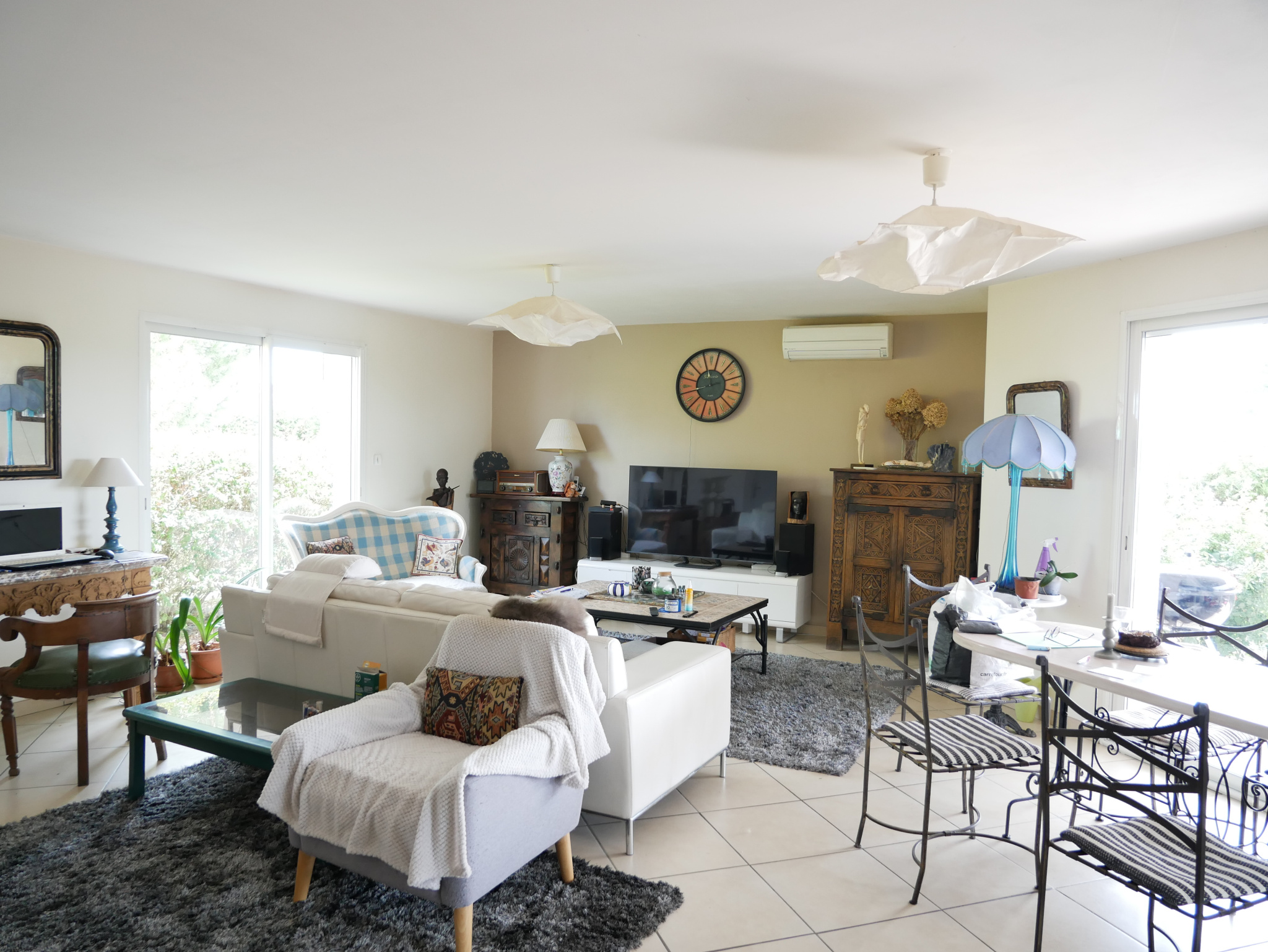 En pleine campagne, à l'abri de tous les regards, cette maison récente offre un cadre de vie paisible et serein, parfait pour ceux qui recherchent le calme et le confort. Vous serez séduits par son grand séjour lumineux avec cuisine ouverte entièrement meublée, idéal pour partager des moments conviviaux en famille ou entre amis.