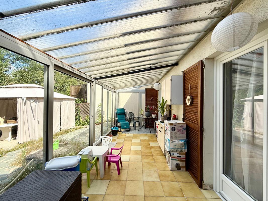 Édifiée sur un terrain de 600 m², la maison dispose également d'une grande véranda baignée de lumière, véritable pièce de vie supplémentaire ouverte sur le jardin.
