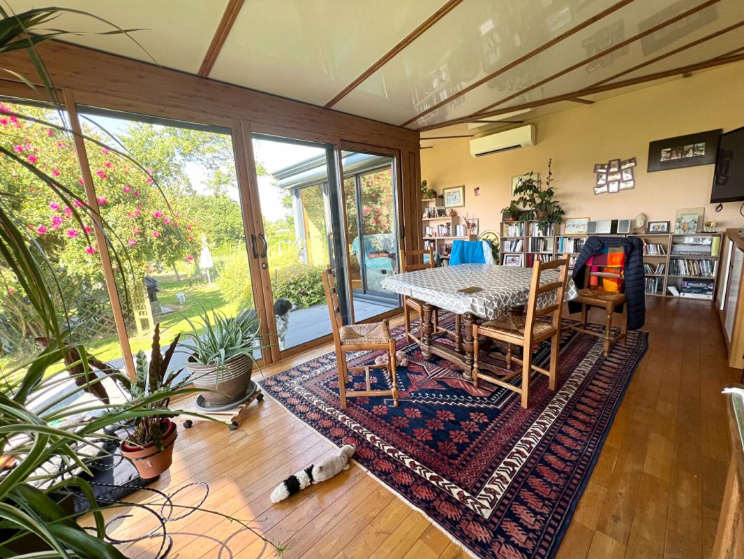 Cette maison dispose d une belle pièce de vie  avec cuisine A/E ,  d une véranda d environ 35 m2 ouverte sur le jardin .