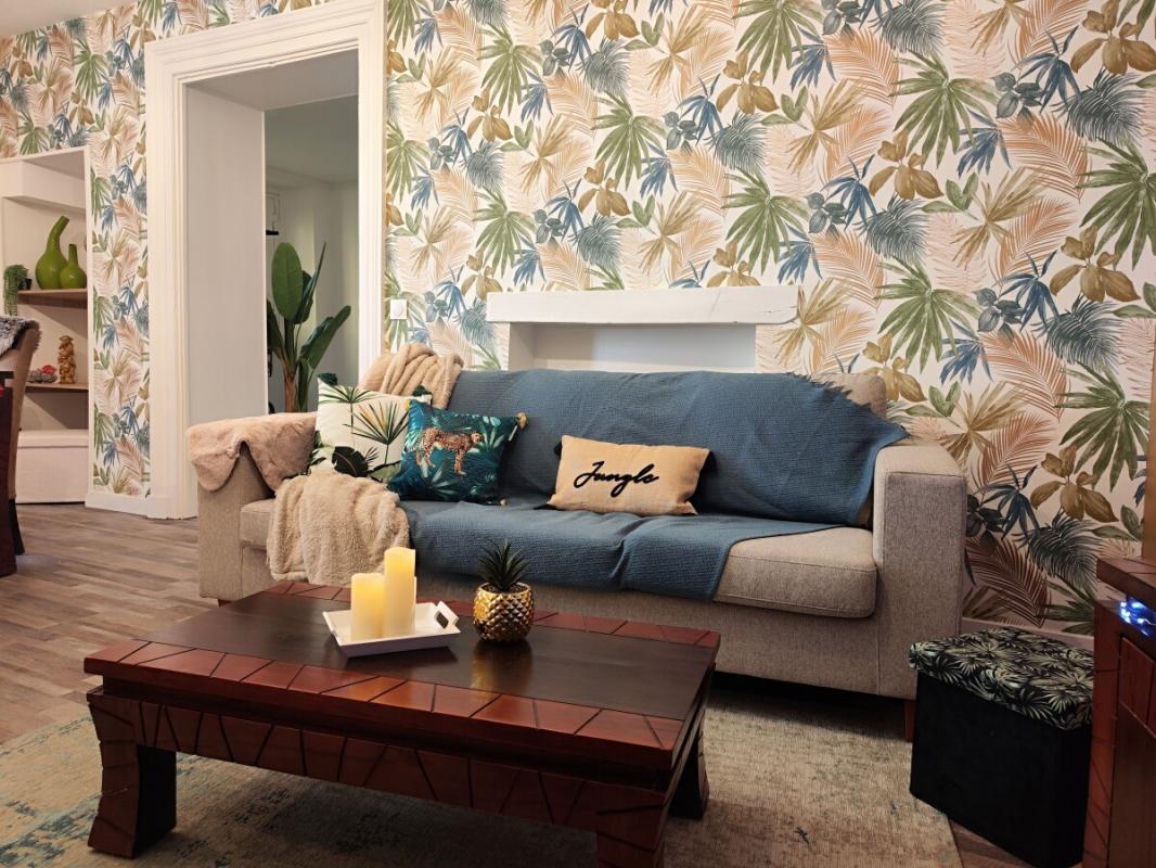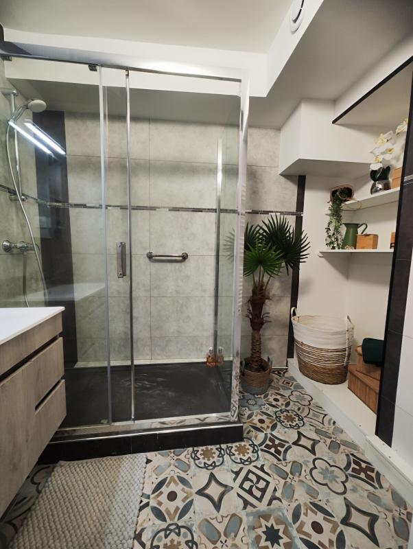 Appartement de 4 pièces entièrement rénové comprenant une vaste entrée, séjour, salle à manger, cuisine aménagée, deux chambres, une salle de douche, un Wc séparé avec lave-mains.