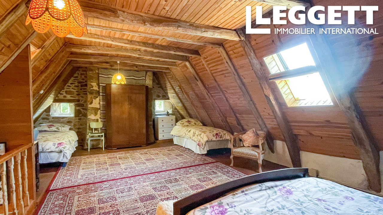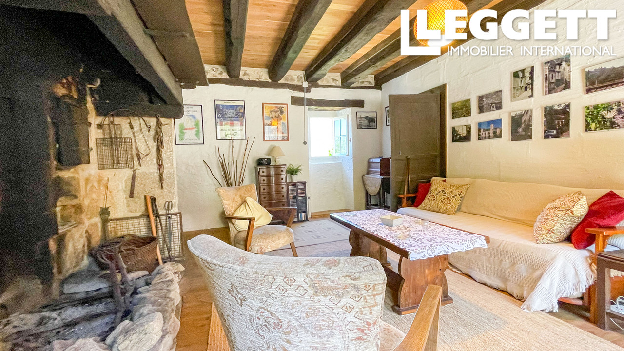 La maison est rustique, SANS CHAUFFAGE sauf l'immense cantou dans le salon. De plain pied, vous trouvez donc le salon (21 m2) et une chambre (15 m2) ; sous les combles un dortoir (35 m2) et en RDJ, la cuisine (17 m2), une salle d'eau-WC et l'étable qui a été conservée avec les éléments agricoles trouvés dans la maison.