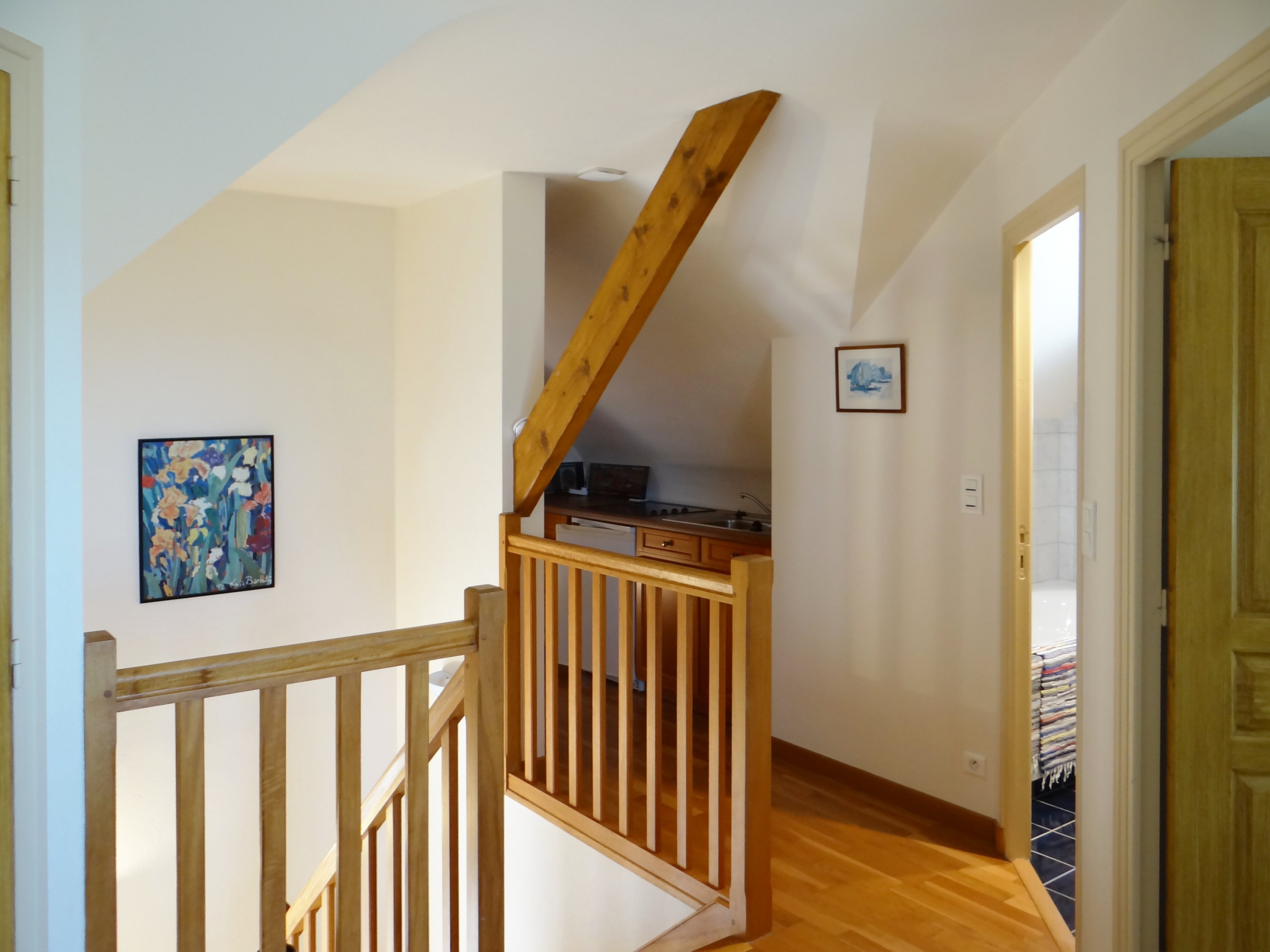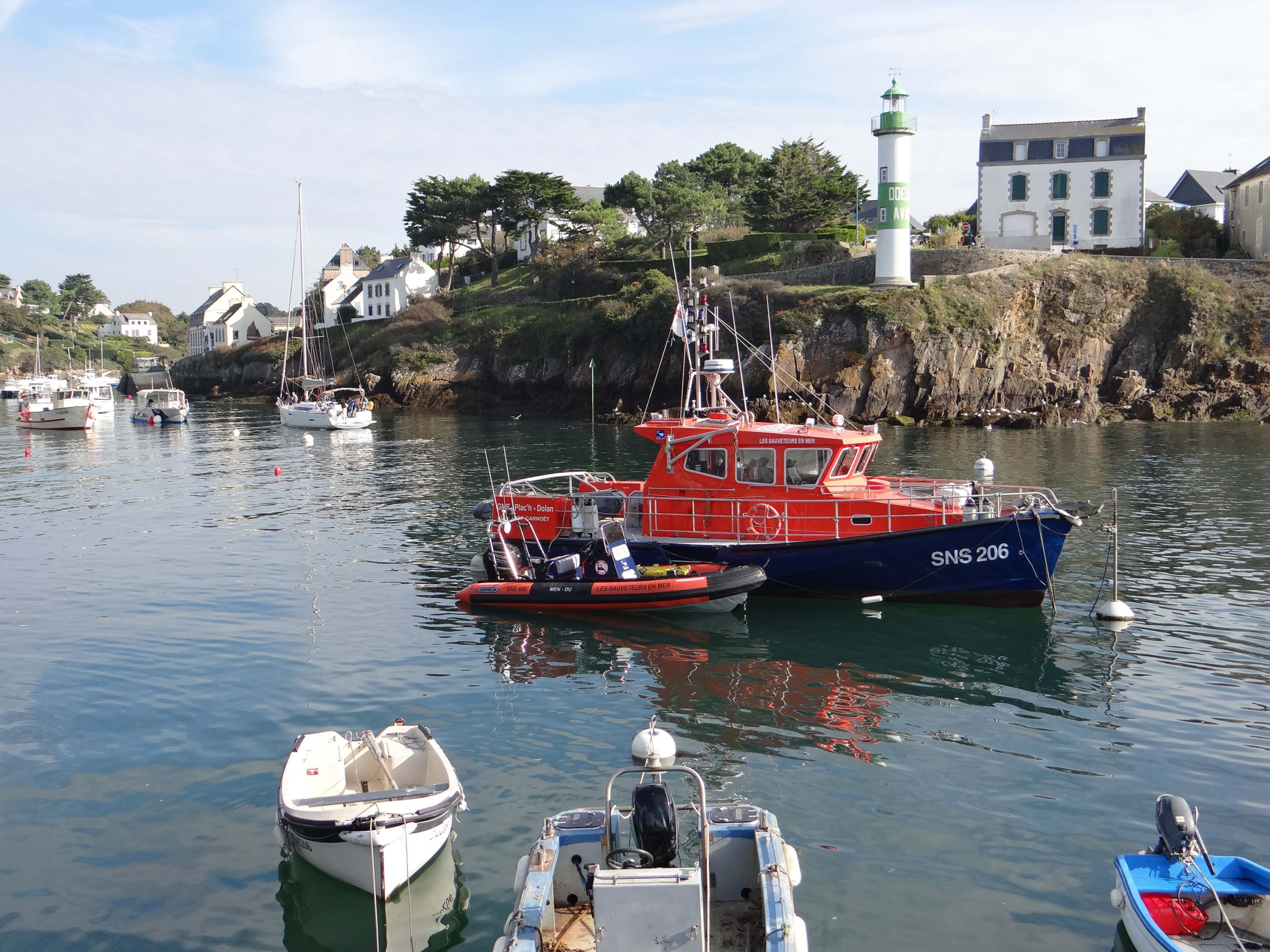 A Doëlan, très belle vue mer pour cette jolie villa construite en 1999 sur le coteau qui domine le port, à 200 m de la plage et du GR34. Au rez-de-chaussée, entrée, séjour-salon équipé d'une cheminée à insert, cuisine ouverte, une chambre et une salle d'eau ; garage attenant 20 m2. A l'étage, une large mezzanine dessert 3 chambres dont 2 vue mer, une salle de bains (douche et baignoire). Sous-sol total 60 m2, hauteur sous plafond 2,40 m.