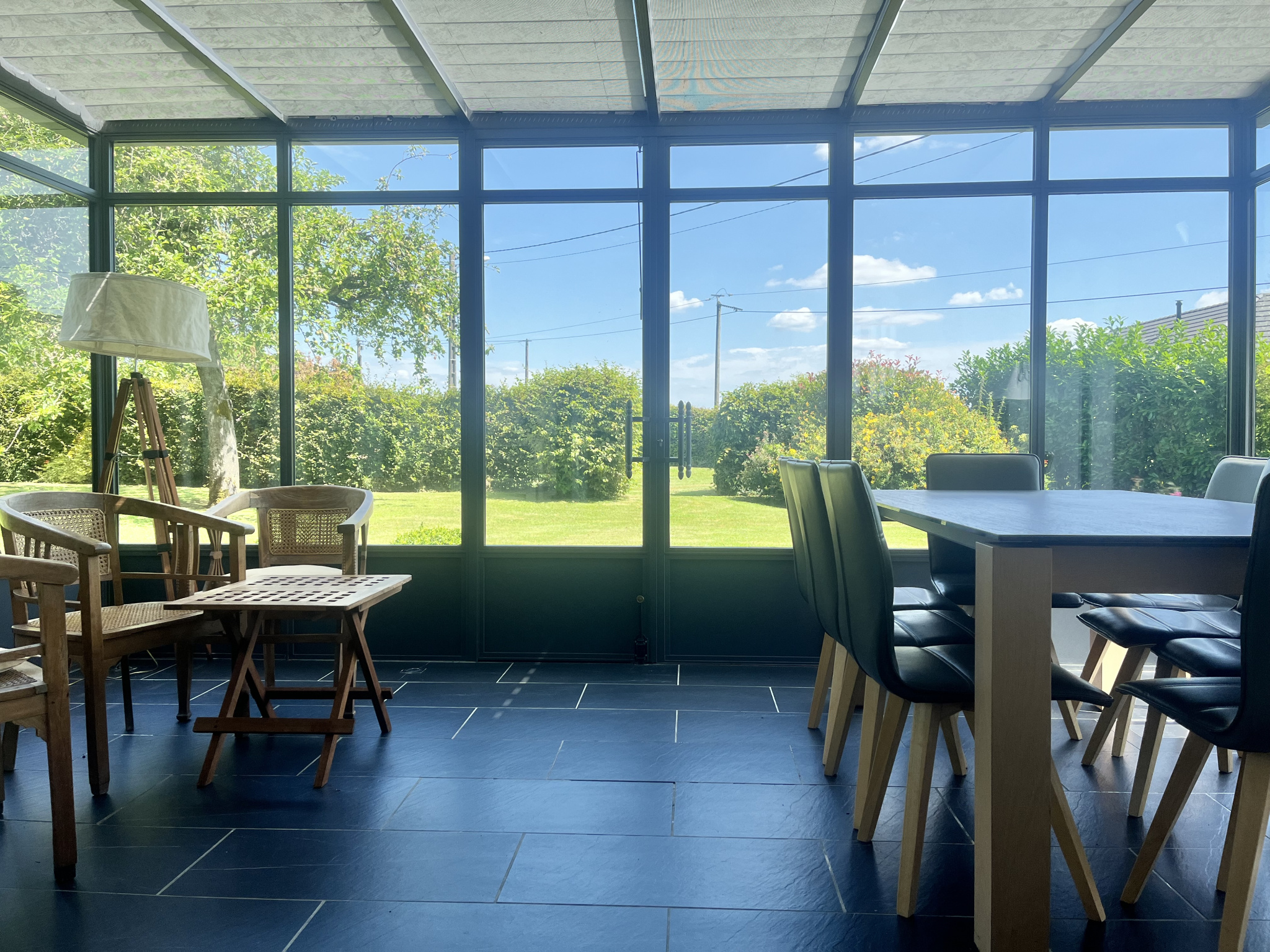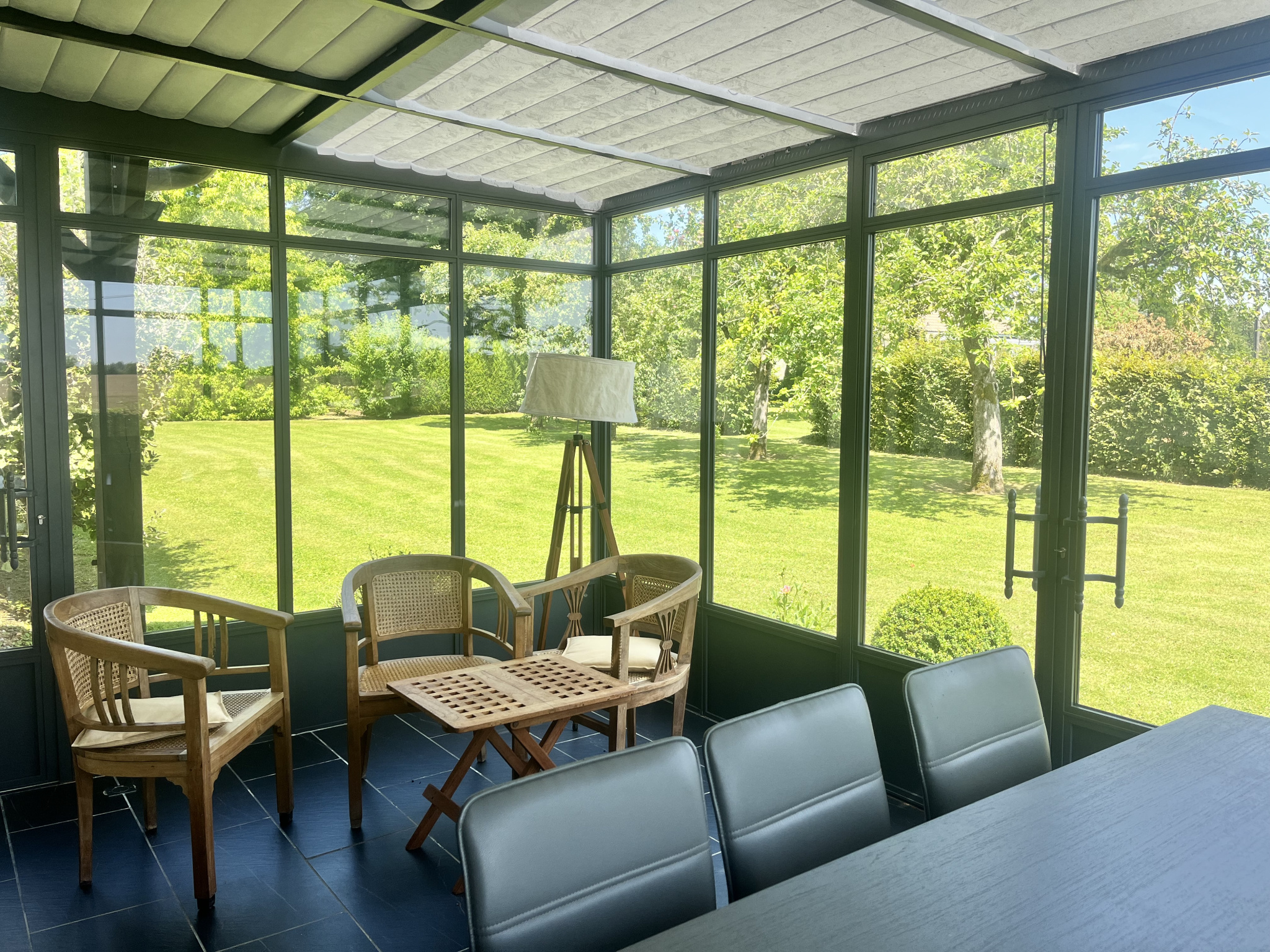 Ravissante annexe avec terrasse couverte, un bureau (avec bibliothèque) totalement vitré sur le jardin, idéal pour atelier d'artiste ou profession libérale // Annexe à usage de garage, atelier, remise, bûcher // Bâtiment composé 1 pièce fermée avec point d'eau, et un espace parking (3 voitures) couvert sur un terrain indépendant de 1742m2.