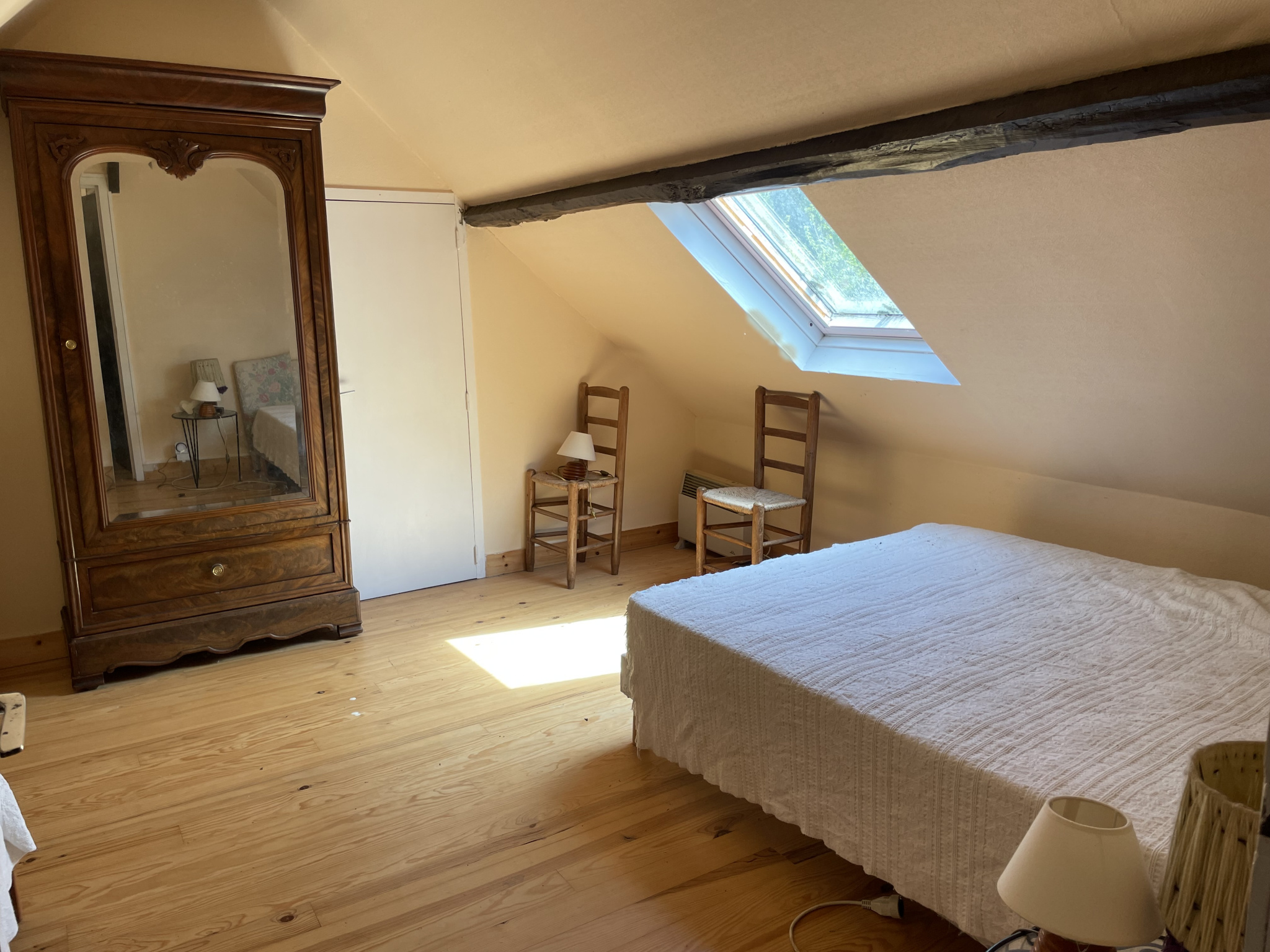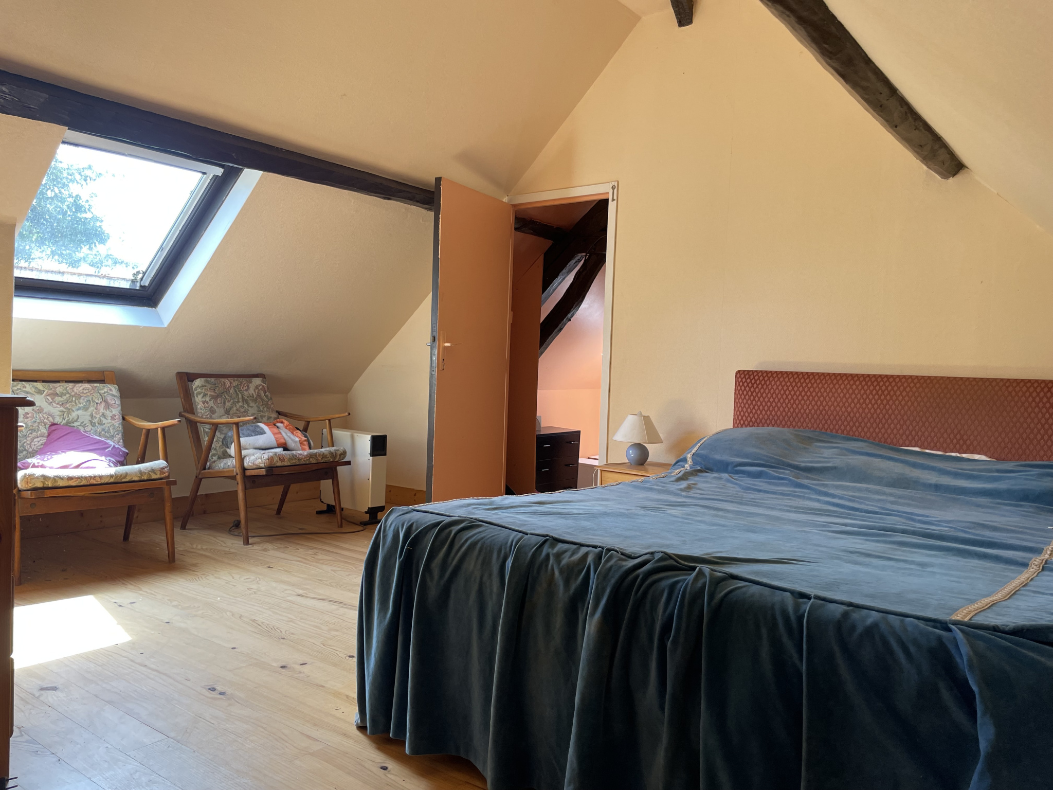A l'étage: 2 chambres puis 1 pièce avec salle d'eau, wc, 2 chambres, petit grenier à suivre.