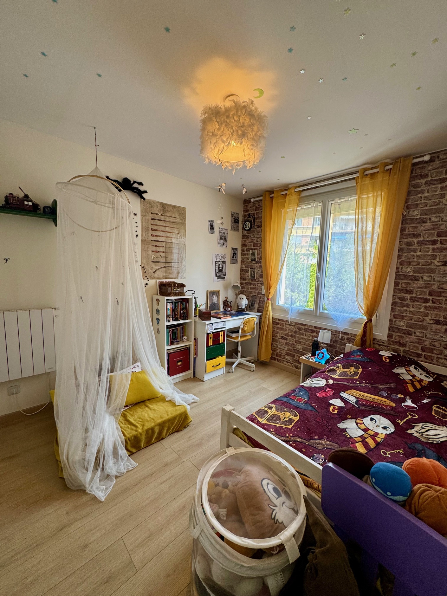 Une entrée avec placard, une grande salle d'eau avec WC, un double séjour exposé sud ouvert sur une cuisine aménagée, trois chambres.