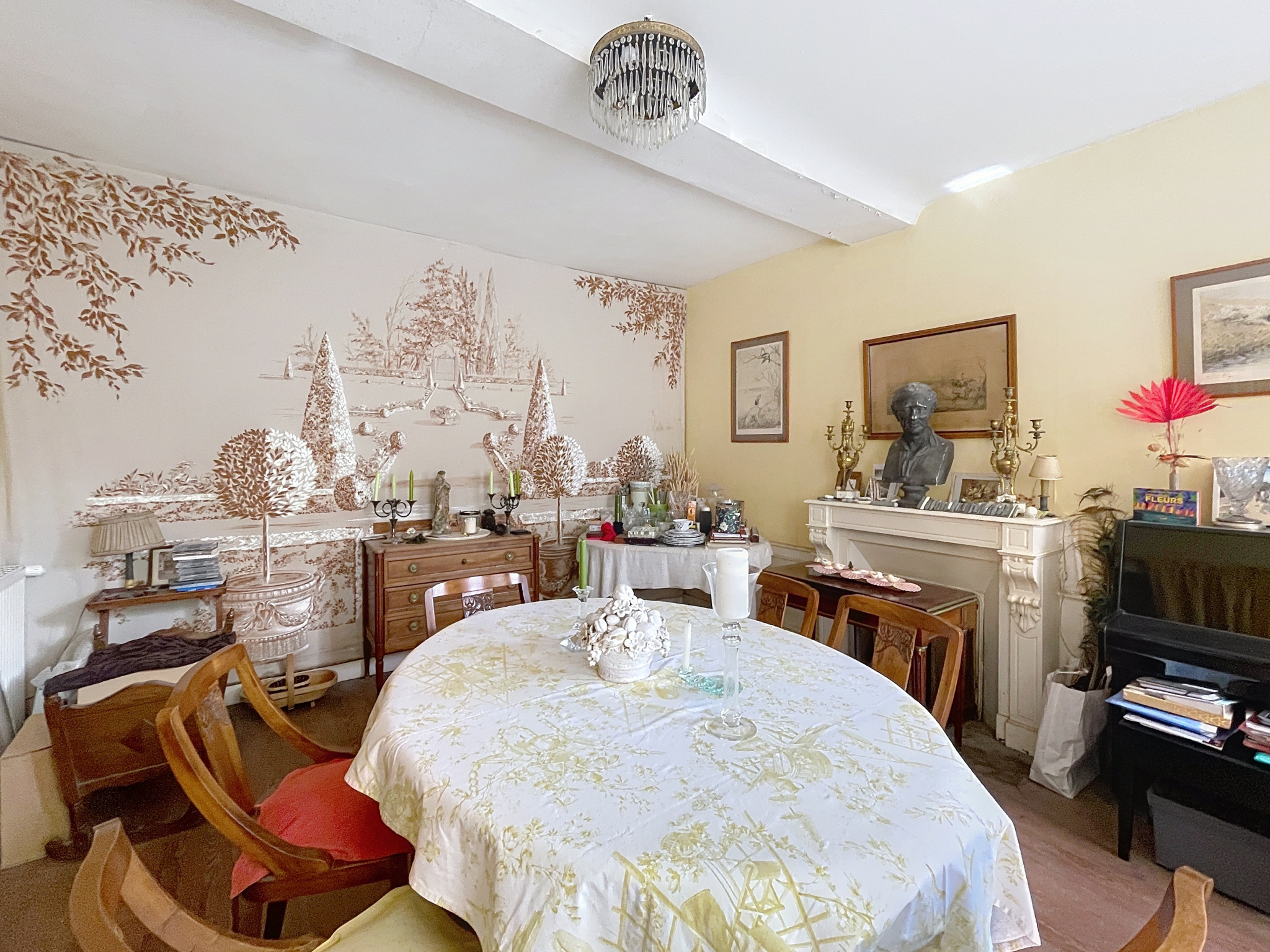 Dès l'entrée, le charme opère grâce à une façade de caractère typique de l'architecture locale, et se prolonge à l'intérieur avec des éléments authentiques tels qu'un superbe parquet bois massif dans le grand salon de 29 m2, accompagné d'une cheminée. Attenante au séjour, la cuisine familiale de 14 m2 offre un bel espace de préparation et de convivialité.