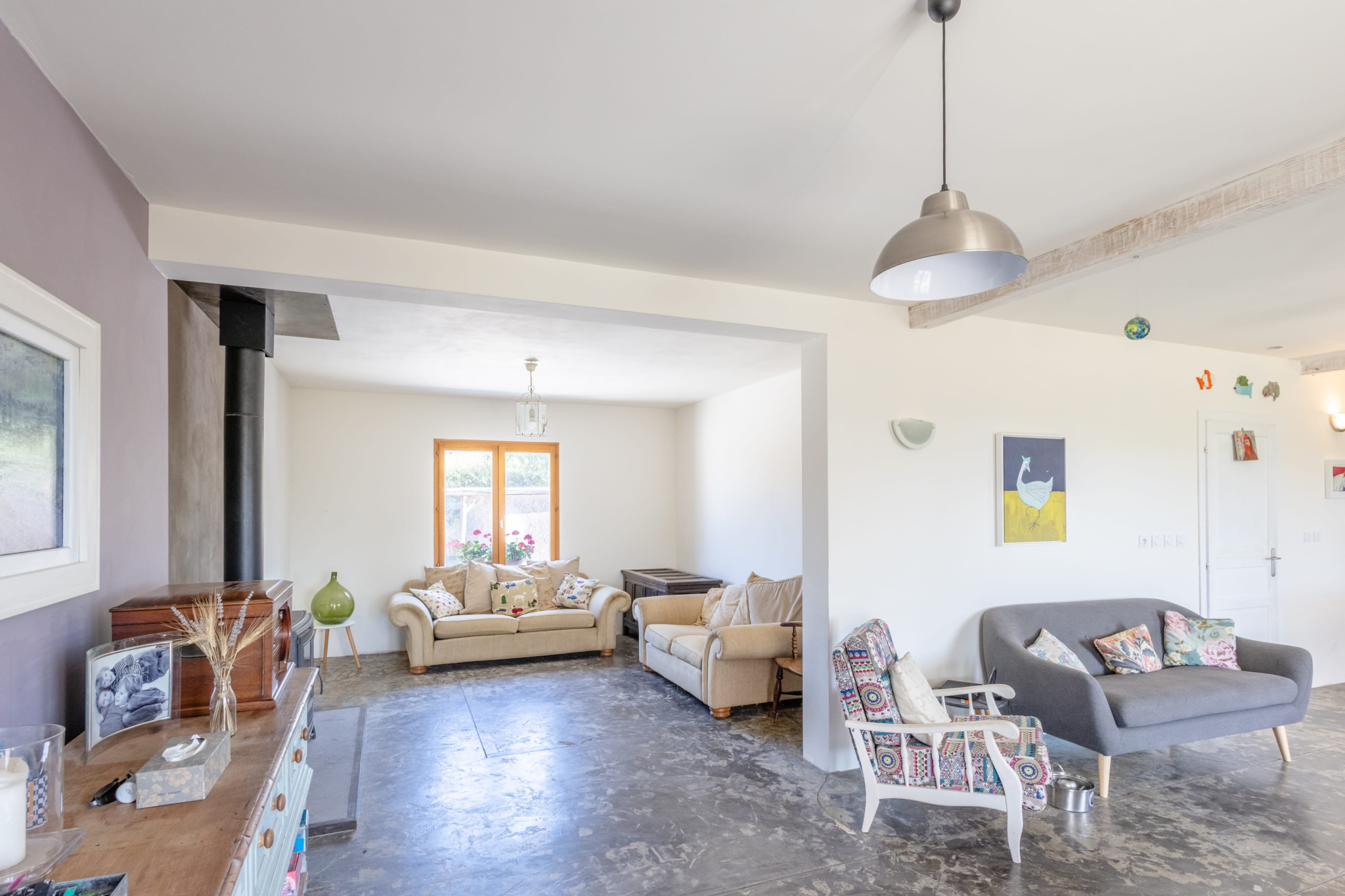 Grande maison familiale comprenant 5 chambres, un atelier d'artiste, un vaste espace de vie ouvert et une vue dégagée sur la campagne et les montagnes.