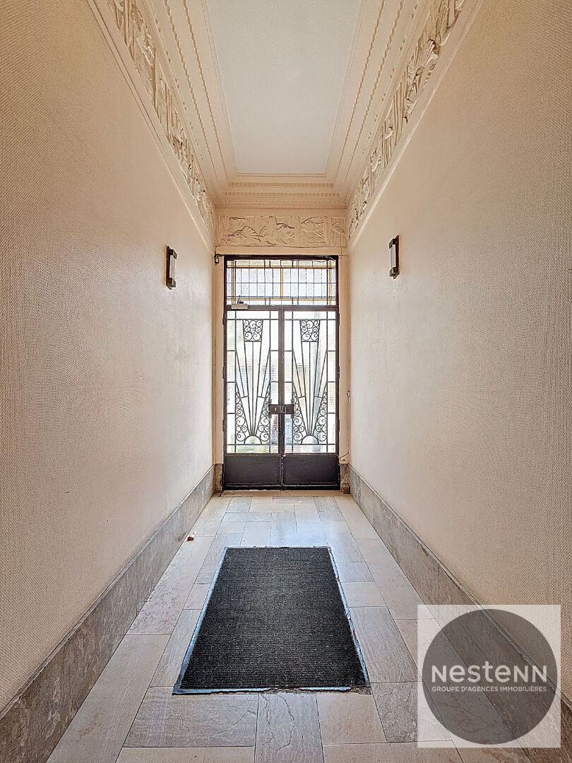 Situé au 5ème et dernier étage d'un immeuble de caractère des années 1930, cet appartement mansardé offre une surface de 59,03 m² Loi Carrez et 105,97 m² au sol, et se compose de :
