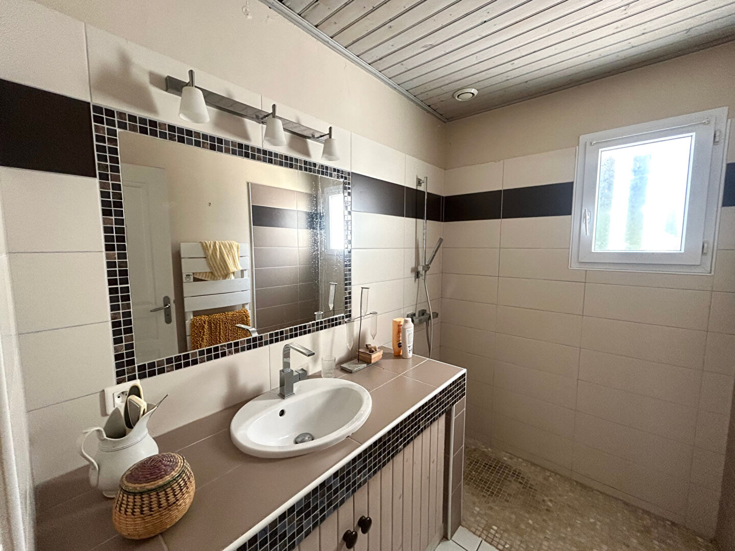 Elle comprend une cuisine fonctionnelle, une pièce de vie chaleureuse avec cheminée, ainsi que quatre chambres. Deux d'entre elles sont traversantes ou accessibles par l'extérieur, offrant ainsi la possibilité d'accueillir des proches en toute indépendance. La maison dispose également de deux salles d'eau et de trois toilettes.