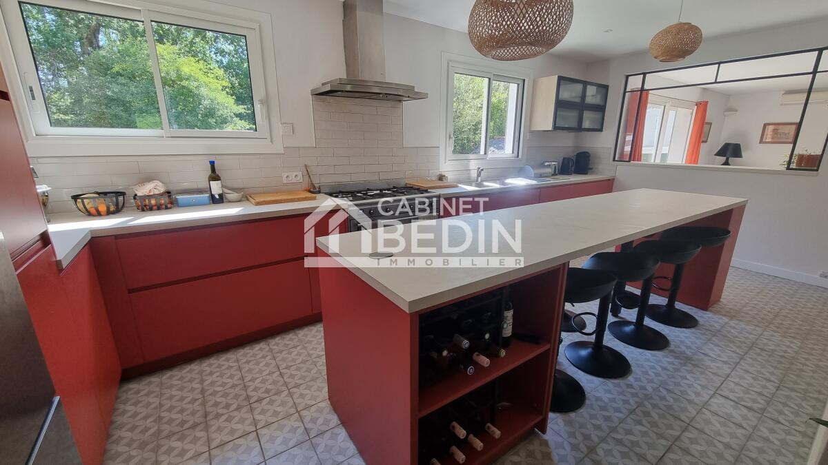 La cuisine américaine, récemment rénovée en 2022 est un véritable bijou de fonctionnalité et d'esthétique. Semi-ouverte sur le salon et accompagnée d'un cellier attenant, elle est idéale pour concocter de délicieux repas tout en restant connecté à vos invités.